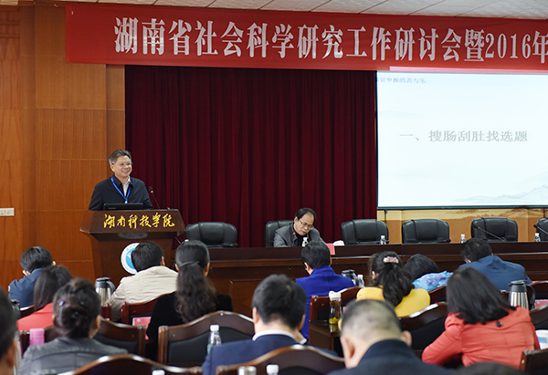 在随后举行的专家研讨会上,湖南师范大学纪委书记唐贤清、湖南工业大学文学与新闻传播学院副院长陈卫华 、湖南商务职业技术学院副教授黄亚宇、湖南大学社科处处长侯俊军、湘潭大学社科处处长王协舟、湖南商学院科研处处长欧阳资生、世界杯官网副校长宋宏福等七位专家学者围绕社会科学工作的管理与发展,从不同角度作了精彩的学术演讲。