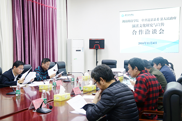 宋宏福代表学校向彭德源一行表示热烈欢迎和诚挚感谢。他说,近年来,学校高度重视地方服务工作,希望充分利用各方合力来推动濂溪文化宣传与研究工作的进展,确保濂溪文化研究与宣传工作的落实,通过校地合作将濂溪文化的品牌形象提升新高度,推动濂溪文化的影响力。
