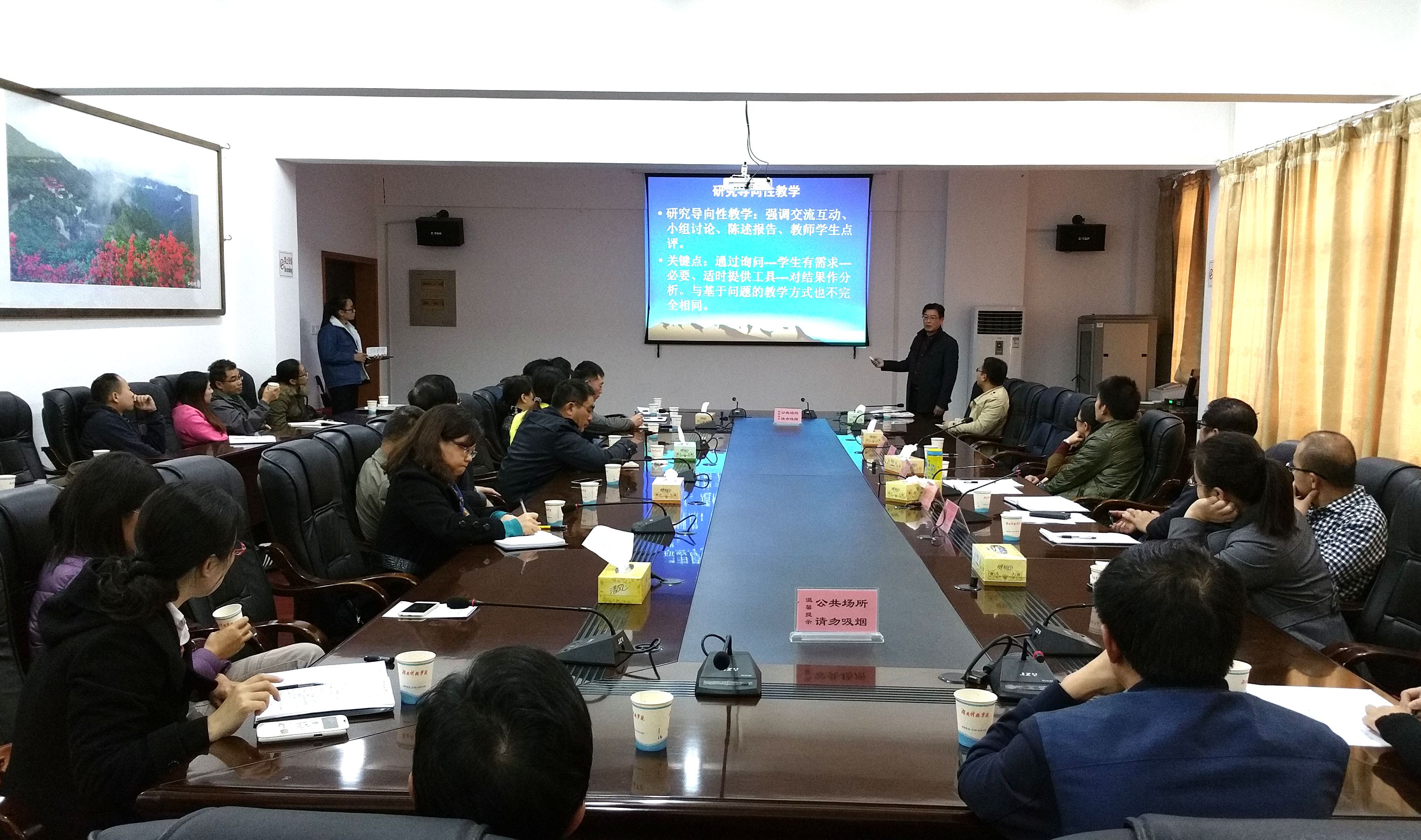 周基博士则分享了加利福尼亚大学研修经验,他围绕美国大学课堂教育及评价方式、科技现代化、教学模式三个方面着手,其热情、具体地发言得到了在座老师们的认同。针对当下的研究形势,他提出如何创新现代化教学,提高课堂教学效果应值得大家反思。