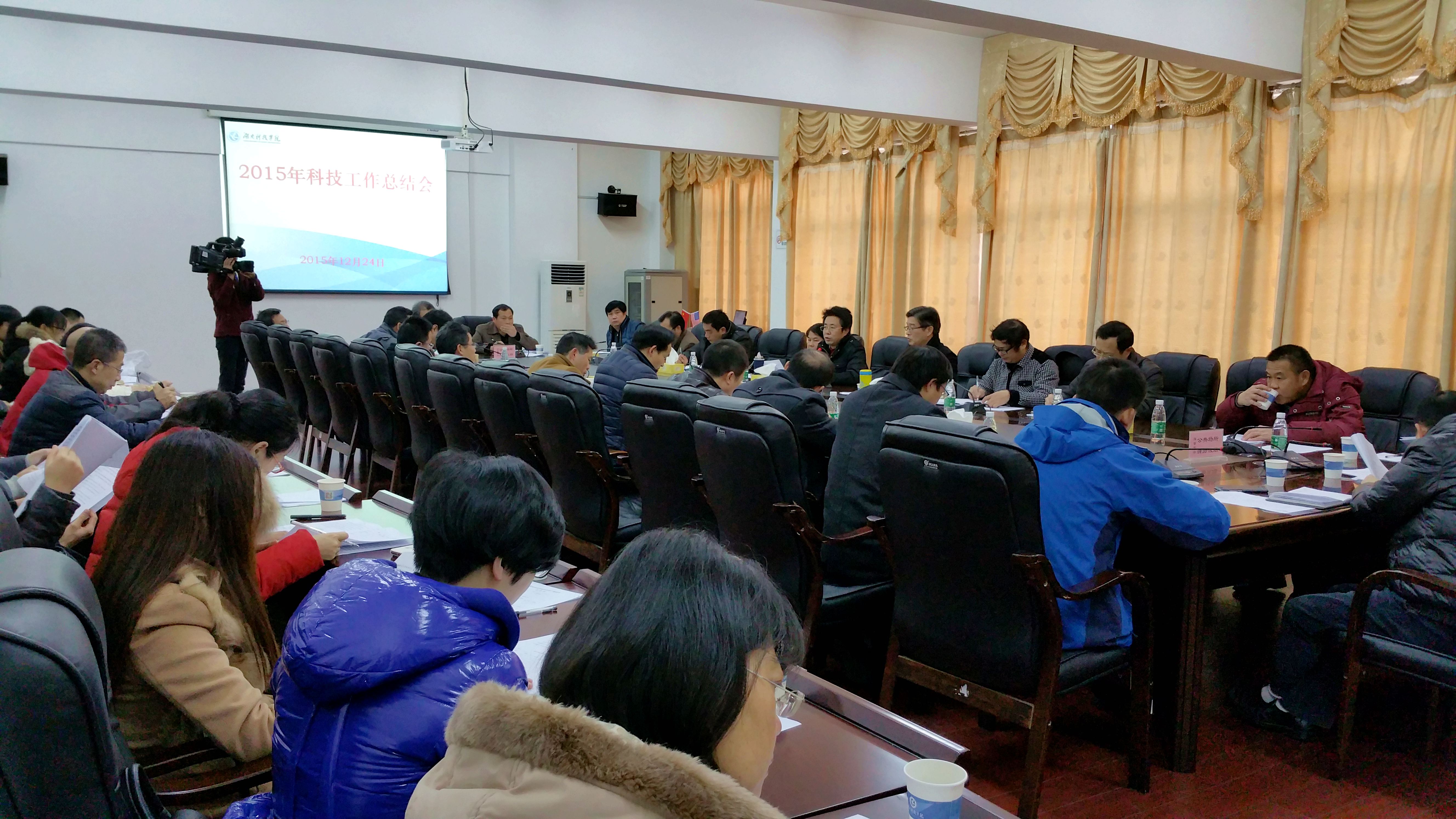 12月24日,校长曾宝成、副校长宋宏福和李常健召集相关职能部门负责人、各教学学院院长及科研技术骨干齐聚一堂,总结世界杯官网2015年科技工作,深入探讨交流科技工作经验,研究部署2016年科技工作。会议由科技处处长杨金砖主持。