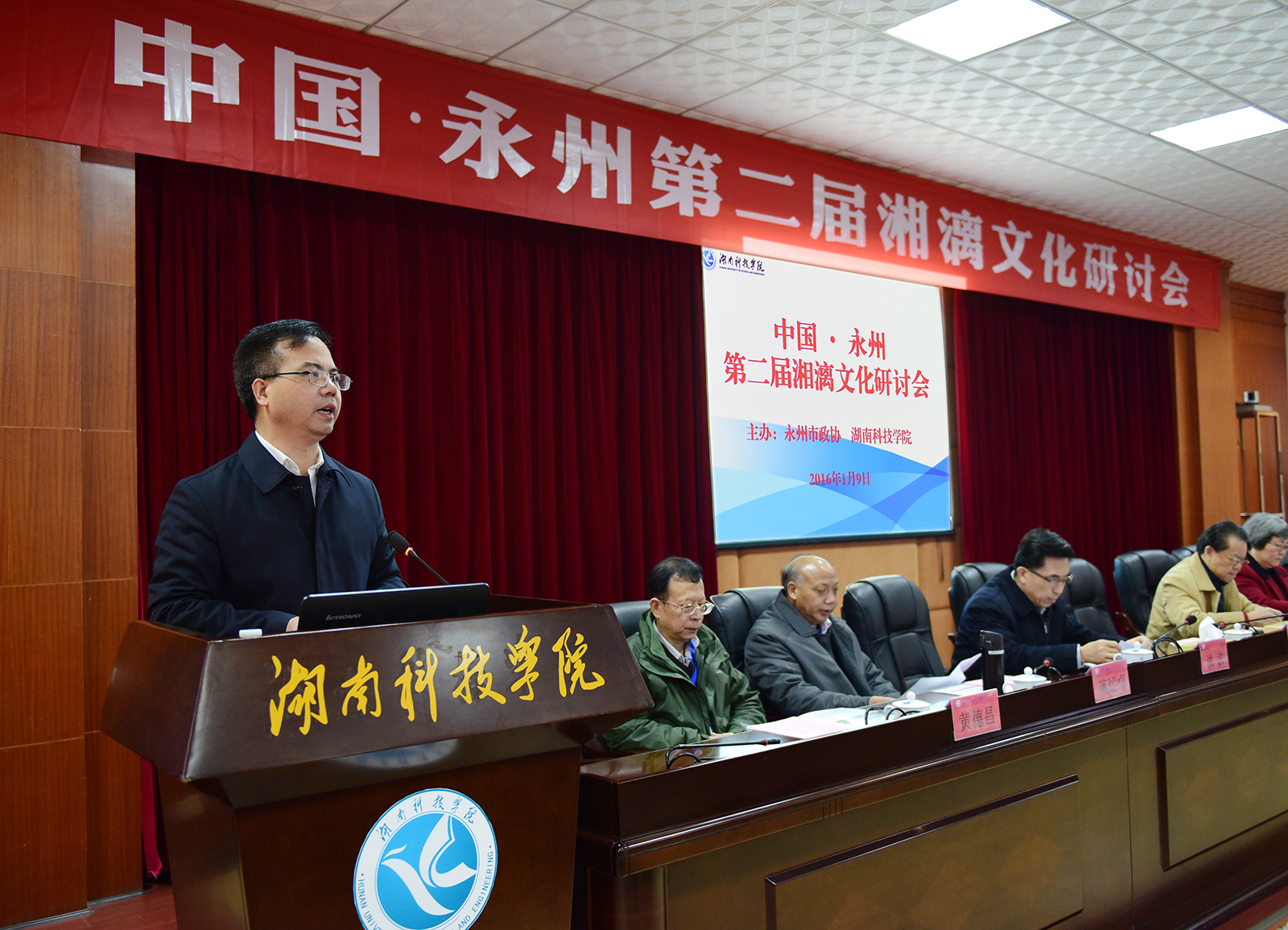 陈弘对各位专家学者的到来表示热烈欢迎。他说,湖南与广西,特别是永州与桂林自古以来就山水相连、文化相融、亲情相依,有着非常亲密的渊源关系,两大区域的交融汇通,使两地在政治、经济、文化等方面呈现区域一体性,形成了地域特色明显的湘漓文化。他认为,研究湘漓文化既是现实的需要,也是义不容辞的责任,能够为湘桂两地的社会发展提供丰富的精神动力和智力支持,继续挖掘两地的历史文化底蕴,探索社会发展的互补性。