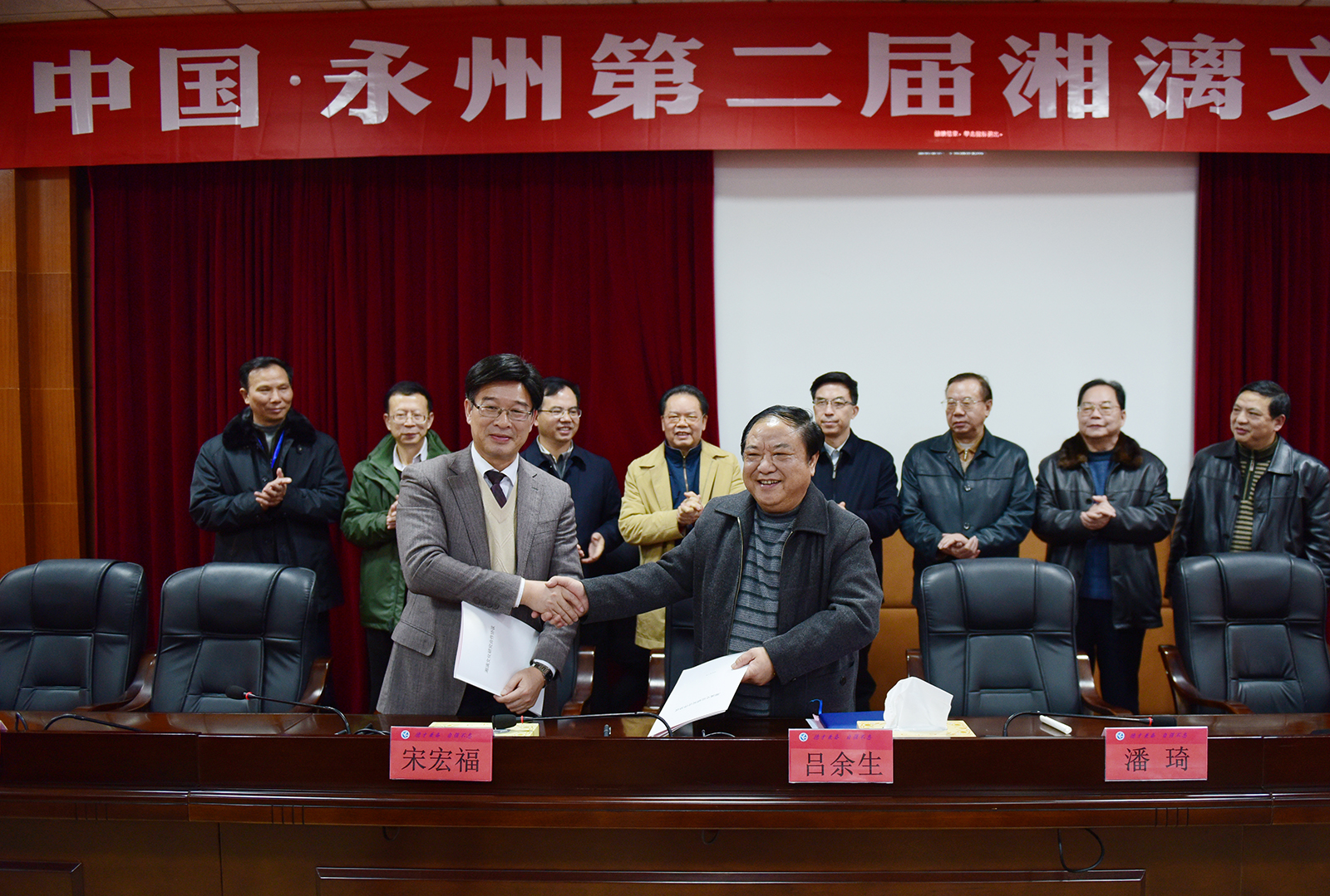 广西壮族自治区党委原副书记、广西桂学研究会会长潘琦,永州市委常委、市委宣传部部长石艳萍,广西社会科学院院长、党组书记、广西桂学研究会副会长吕余生,广西文联党组书记、主席洪波,广东省文艺评论家协会主席、广东省作协主席、暨南大学原党委书记博士生导师蒋述卓,广西文联原党组副书记、副主席、广西桂学研究会副会长黄德昌,原湖南省社科联执行主席、湖南省舜文化研究会副会长陆魁宏及世界杯官网校党委书记、永州市历史文化研究会会长陈弘,副校级督导、工会主席、湖南省舜文化基地首席专家陈仲庚等出席。