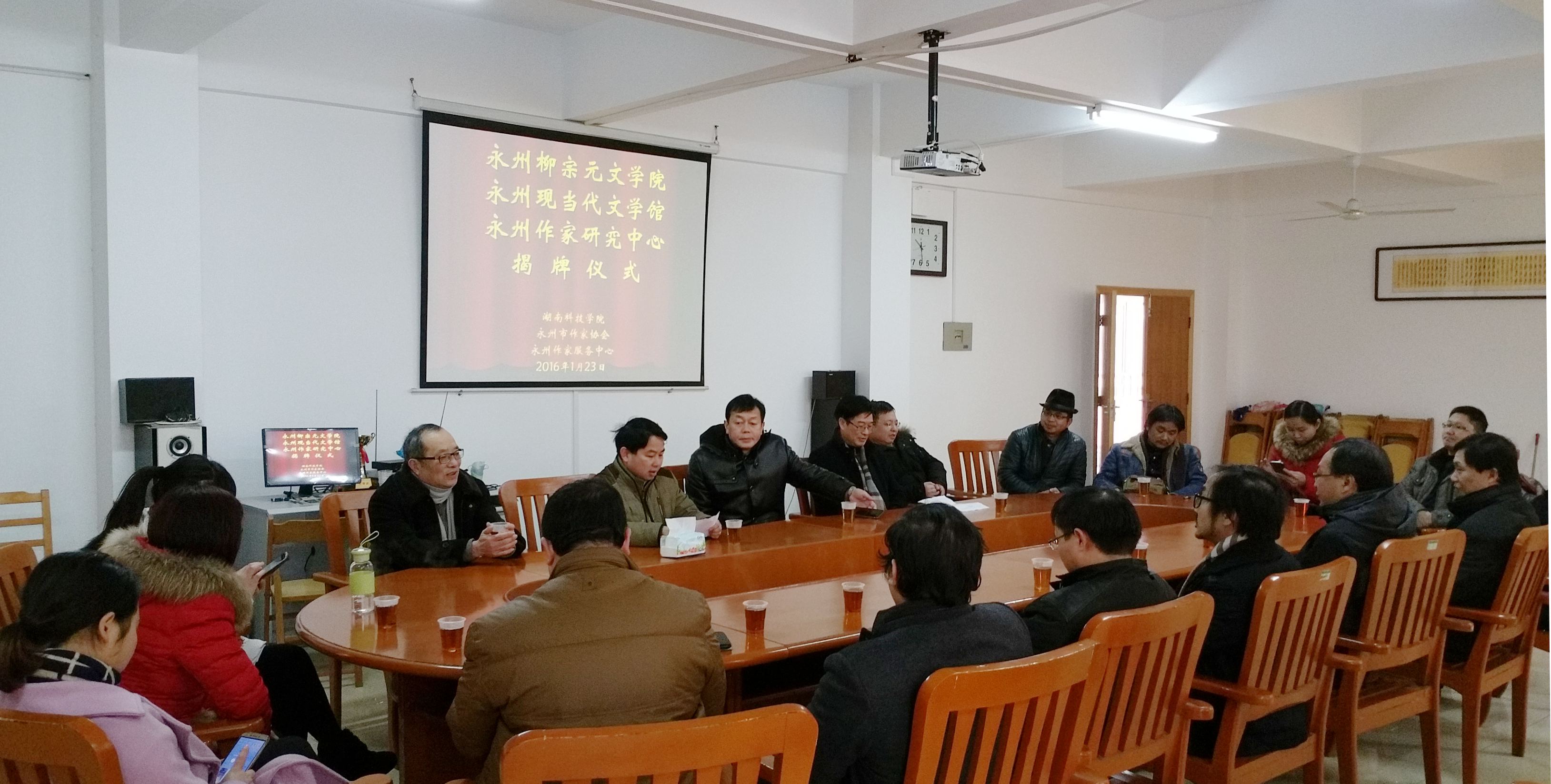 雪后初霁,喜气洋洋。1月23日上午,由2026世界杯官方合作网站、永州市作家协会、永州作家服务中心联合举办的永州柳宗元文学院、永州现当代文学馆、永州作家研究中心揭牌仪式在世界杯官网举行。副校长宋宏福、李常健,副校级督导、工会主席陈仲庚,永州市委宣传部副部长蒋三立,永州市作协主席郑正辉出席仪式并揭牌。学校图书馆、科技处(服务地方办公室)、人文与社会科学学院负责人及《永州日报》、永州新闻网、《品读永州》代表等二十余人参加会议。
