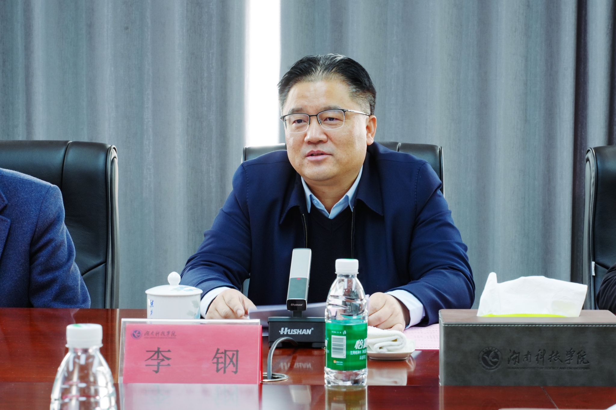 李钢对欧阳晓平院士回访母校表示最热烈的欢迎,向他长期以来对母校的关心和支持表示最诚挚的感谢,并介绍了学校“十四五”期间的发展情况以及学校“十五五”规划、2041年建校100周年远景目标规划。他希望欧阳晓平院士一如既往地关心支持学校的硕士学位授权点建设、科研项目申报、学科发展、人才团队引进等重点工作,加快推进学校各项事业高质量发展。