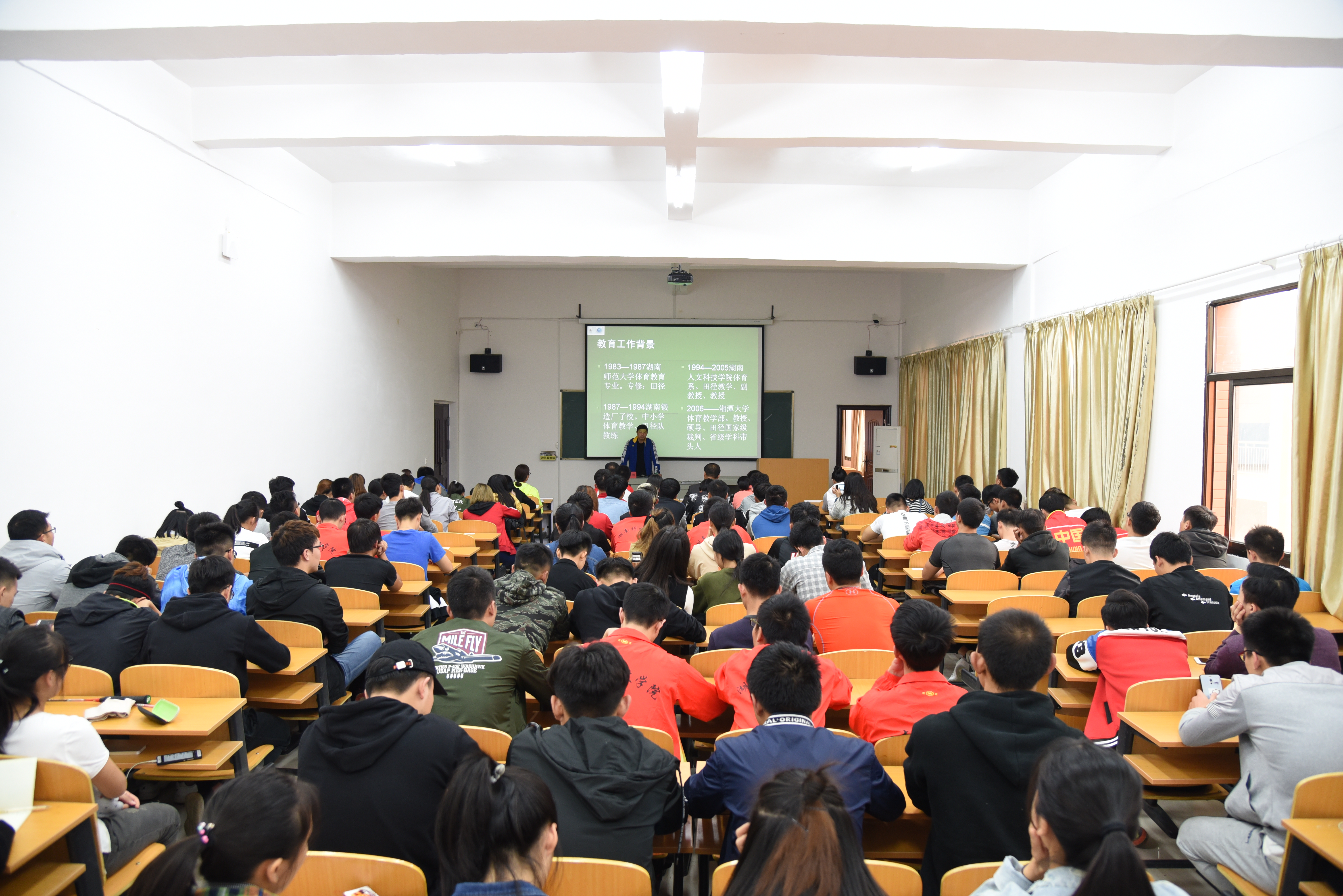 本网讯 10月25日下午,湘潭大学硕士研究生导师熊茂湘教授应邀来世界杯官网作题为《基于供给侧改革的少儿田径新思路》的学术讲座,体育学院师生聆听讲座,体育学院院长刘根发主持讲座。