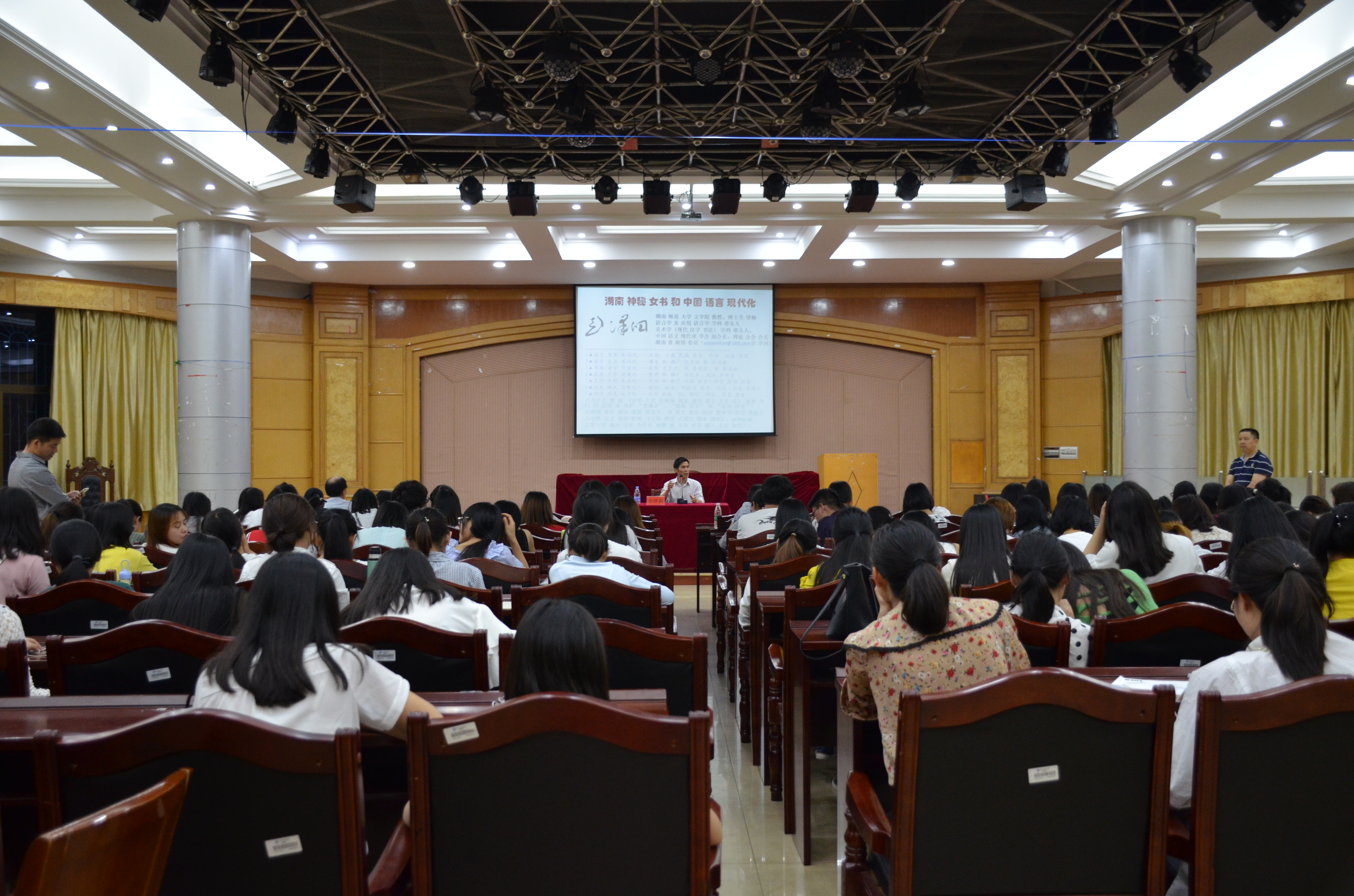 彭泽润为师生们作了题为“湖南神秘女书和中国语言现代化”的学术讲座。彭泽润教授表示女书作为2006年首批入选国家非物质文化遗产名录的民俗之一,在人类文字和文明起源等方面都具备其独特的文化意义。讲座现场,播放了女书传人——胡美月用江永方言演唱的民俗歌曲《伴嫁歌》,并且把女书与日本片假名放在一起,证实了其两者具有相似性。当谈及到语言现代化时,彭泽润教授指出,语言现代化就是要让语言生活与现代生活不断结合,主张汉字应尽快向音素文字方向发展,以便于加快中华文化在国际舞台上的传播速度,让更多国外的中国文化爱好者更轻松的学习。