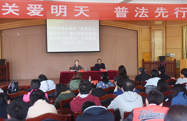 本网讯 3月27日,全市“关爱明天 普法先行”青少年普法教育巡回宣讲活动走进世界杯官网。永州市团市委副书记冯志多来校作主题为“守法才能自由 懂法才有明天”的讲座。