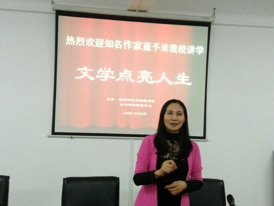 10月25日下午,学校图书馆、永州作家研究中心邀请知名作家蓝予为西山文学社和源诗社成员,举办了一场以“文学点亮人生”为主题的讲座。