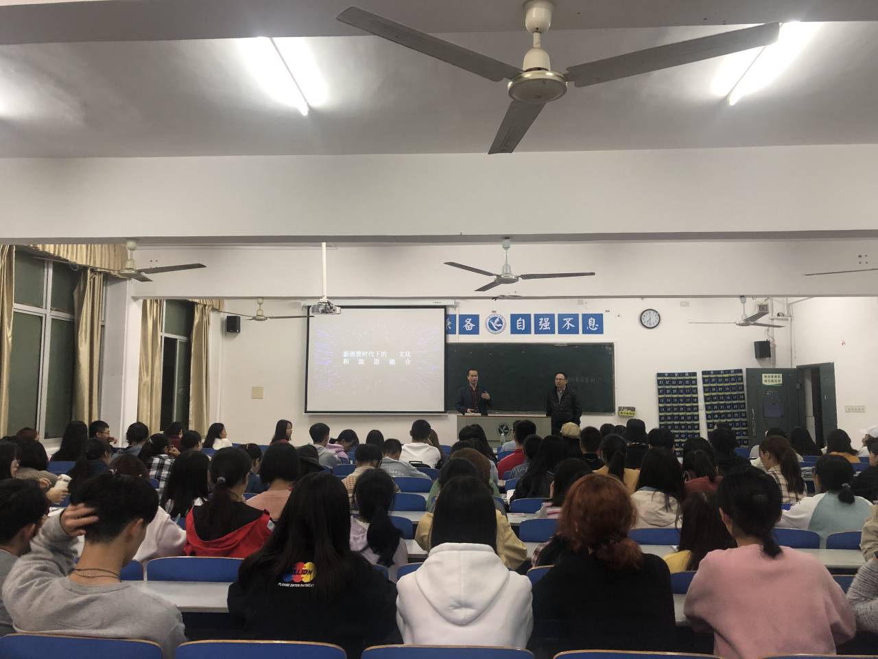 本网讯(通讯员 兰桂红)为增进2019级同学对专业行业的认识,10月16日晚,学院邀请万豪国际集团华中区代表杨骏先生在明理楼302教室主讲“新消费时代的文化与旅游产业”,讲座由院党总支副书记潘清远主持,学院全体新生参加。