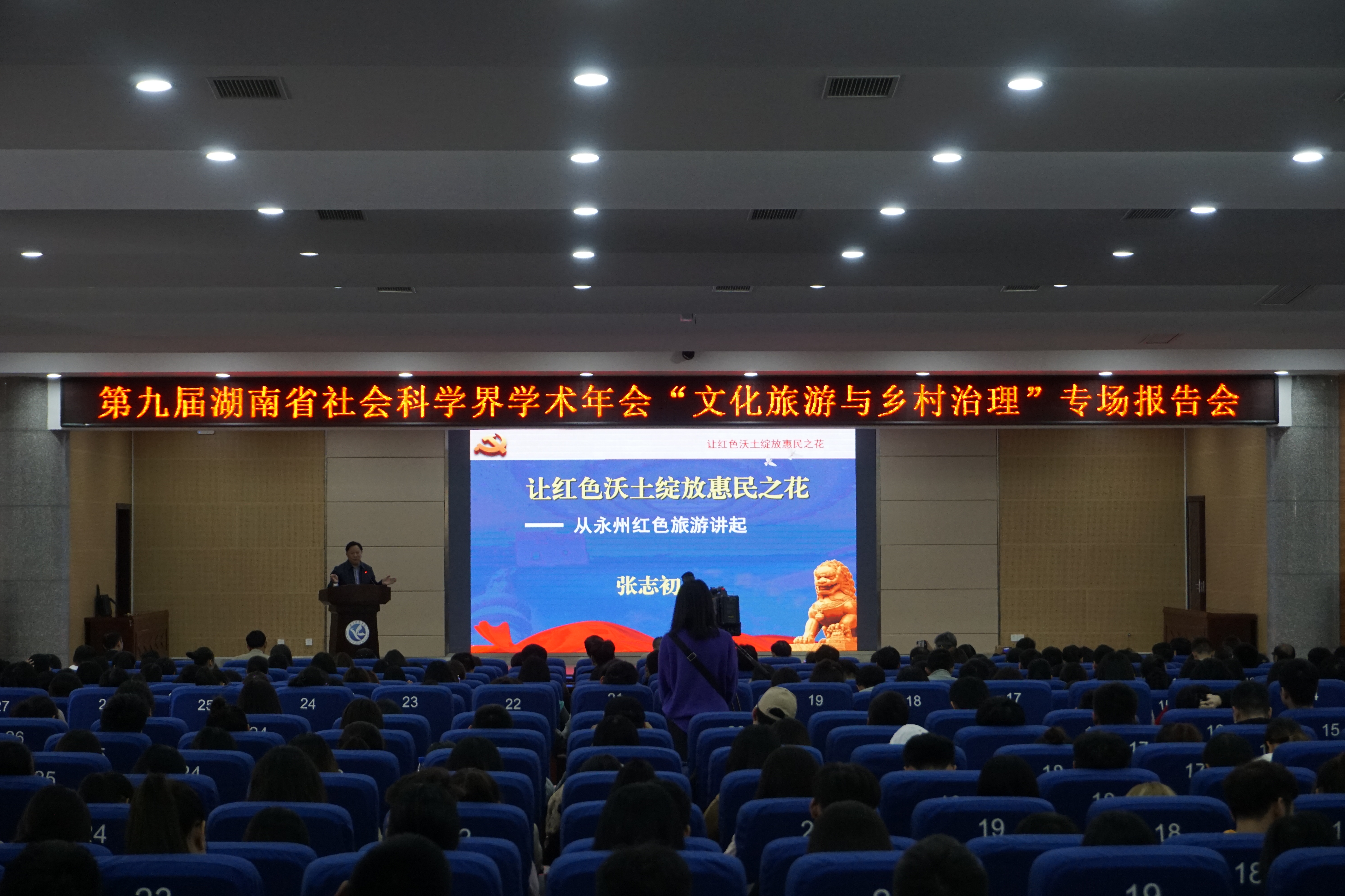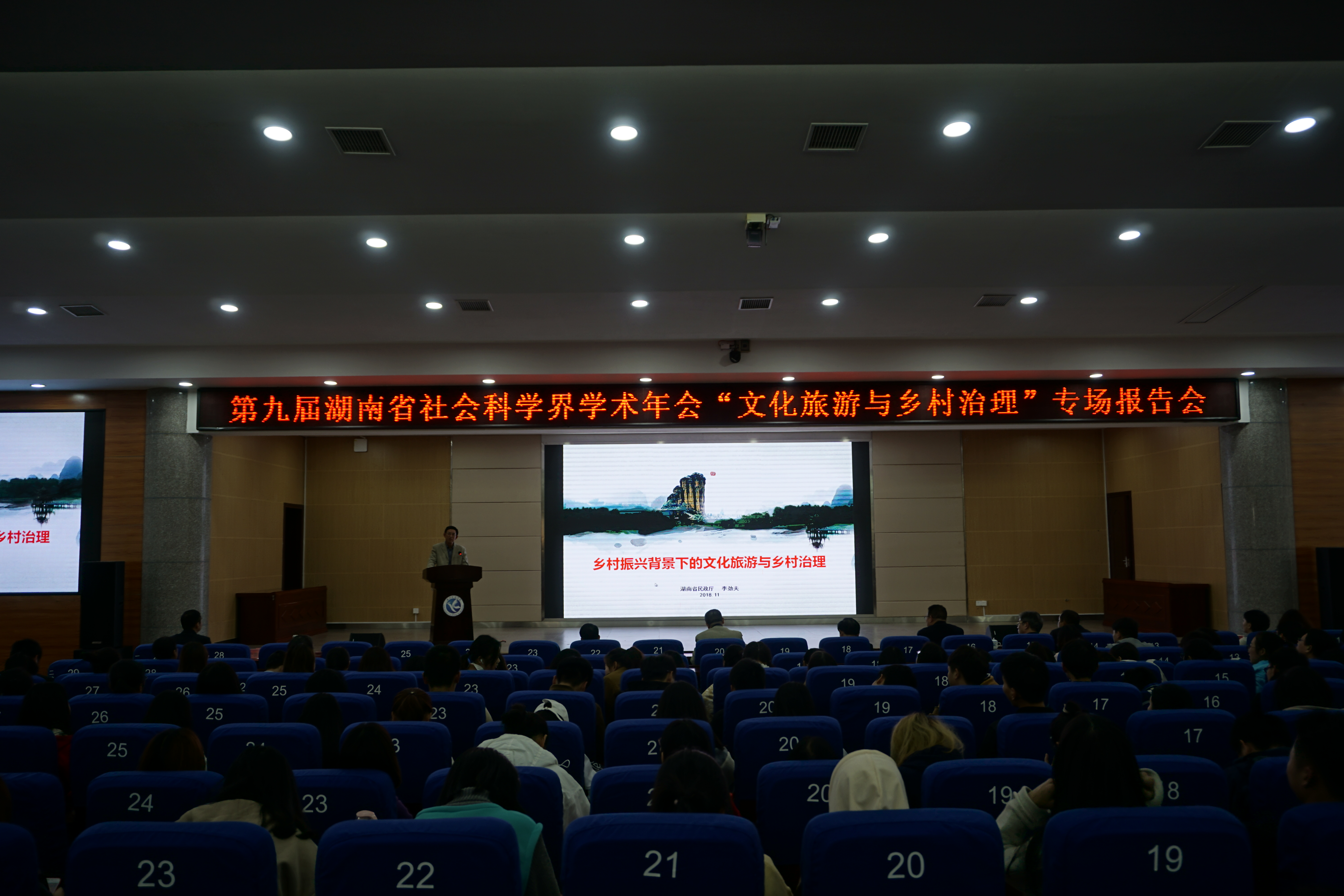 本网讯 11月28日下午,由湖南省社会科学界联合会、湖南省社会科学界学术年会组织委员会联合主办,2026世界杯官方合作网站承办,我院和科技处具体负责的第九届湖南省社会科学界学术年会“文化旅游与乡村治理”专场报告会在潇湘大讲堂隆重召开。