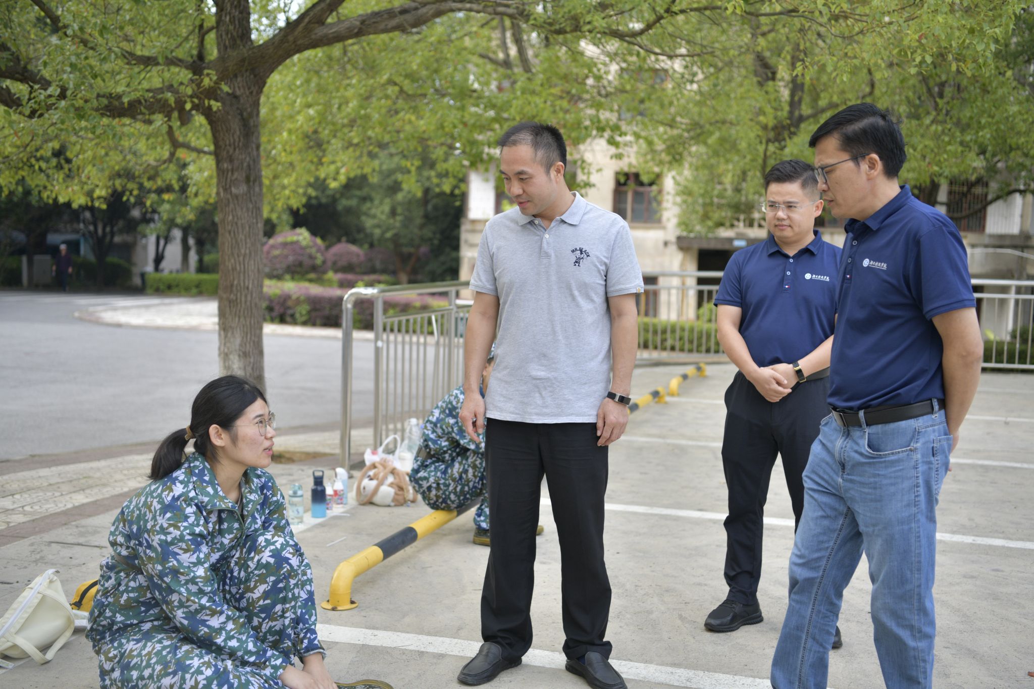 谢韶光书记,黄渊基院长,姚先林副院长,蔡保忠副院长及李满梅辅导员对旅文院连队开展了视察工作。视察工作一行人依次检阅了旅文院新生的军训训练,其中谢韶光书记郑重地对新生提出:“汗水都是刻苦训练的见证,大家都要保持着这股毅力与坚韧,向别人展示旅文院良好的精神风貌!”