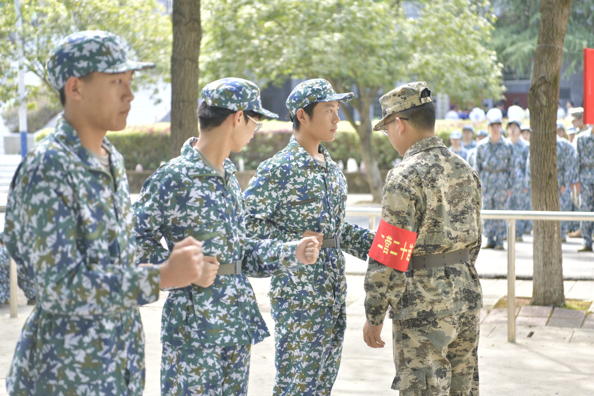新生们的第一次训练从站好军姿开始。“三挺三收一平一睁一正!”教官大声地传授站好军姿的口诀,并亲自示范正确的动作,耐心地为学生纠正错误。稀稀疏疏站队的新生们逐渐井然有序,规范整齐。炙热的阳光让队员的汗水不断洒下,但脸上坚毅的表情不曾改变。随后教官着重强调军装的穿戴标准,“正帽、捋衣领、平整上衣、束紧腰带……”,教官不厌其烦地讲解要领。穿戴军装不止是个人形象的展示,还体现着对军人身份的尊重。