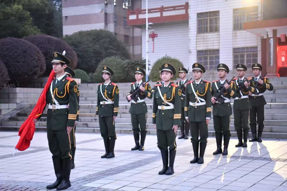当第一缕晨光洒向广场,国旗护卫队队员身着正装,迈着铿锵有力的步伐护送五星红旗走向升旗台。“起来!不愿做奴隶的人们!”激昂的国歌响彻广场,全院师生肃立行注目礼,鲜艳的五星红旗迎着朝阳升起,庄重的氛围让师生深切体悟家国情怀的力量。