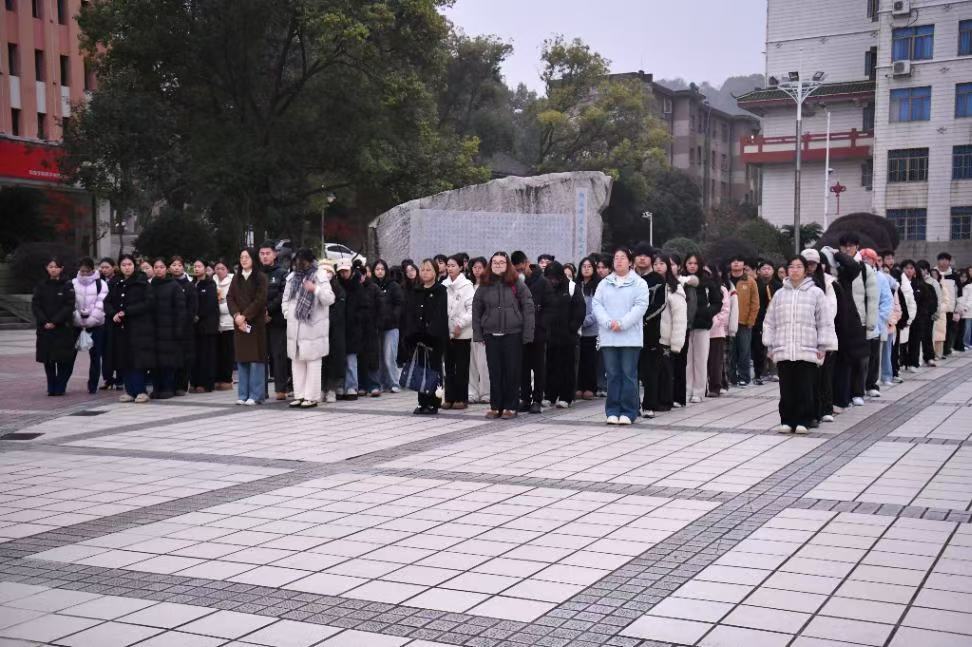 本网讯(通讯员 刘雅欣)12月22日,旅游与文化产业学院在中心文化广场隆重举行升旗仪式。本次仪式由李思雨老师主持,学生会纪检部统筹组织,2024、2025级全体学子齐聚广场,以赤诚之心礼赞国旗,以奋进之姿践行初心。仪式旨在将爱国主义教育与品德修养培育深度融合,引导青年学子坚守慎独之道、恪守诚信应考准则,在青春赛道上筑牢思想根基、勇担时代使命。