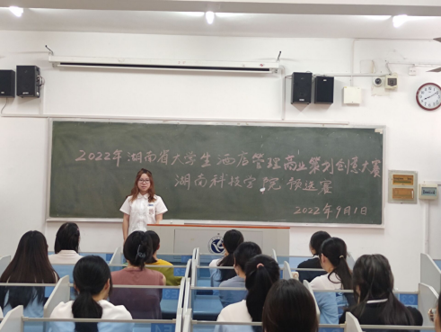 9月1日上午,2022年湖南省大学生酒店管理商业策划创意大赛预选赛在旅游与文化产业学院弘毅楼416教室如期举行,旅游管理、文化产业管理、财务管理等大商科专业的学生参加了本次比赛,刘进博士、肖辉军副教授、张宝辉老师担任评委。本次比赛旨在为学生搭建展示自我的平台,培养学生的研究创新能力和团队协作精神,营造创新创业人才培养的浓厚氛围。