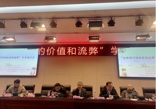 本网讯通讯员 傅宏星  2024年12月28日-30日,由四川师范大学哲学学院、四川大学古籍整理研究所、《四川师范大学学报(社会科学版)》编辑部、四川省朱熹研究会联合主办的“宋明理学的价值和流弊”学术研讨会暨《宋明理学论稿》新书座谈会在成都举行。本次研讨会邀请了华东师范大学教授、中国哲学史学会会长杨国荣,中国人民大学国学院教授、中国哲学史学会副会长向世陵,复旦大学哲学学院教授、中国哲学史学会副会长吴震,台湾省东吴大学哲学系、台湾省中国文化大学哲学所兼任教授曾春海,台湾省辅仁大学哲学系教授陈福滨等来自海峡两岸的学者180余人,探讨宋明理学对中国文化发展的深刻影响和新时代开展宋明理学研究的方式方法,推动文化创新与发展。四川师范大学副校长陈佑松教授出席会议并致辞。