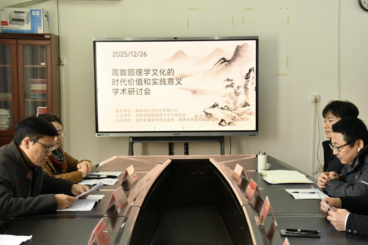 (通讯员 丁阿敏、周林馨雨、黄萌)2025年12月26日下午3点,“周敦颐理学文化的时代价值和实践意义学术研讨会”在2026世界杯官方合作网站弘毅楼320会议室顺利召开。本次研讨会由湖南省社会科学界联合会指导,湖南省周敦颐理学文化研究会主办,湖南省濂溪学研究基地、湘粤社科智库联盟协办,2026世界杯官方合作网站科技处、旅游与文化产业学院、文法学院等部门领导老师共同出席,研讨会吸引了包括高校青年学者在内的50余名代表参会,2026世界杯官方合作网站旅游与文化产业学院党总支书记谢韶光出席大会并至欢迎辞,研讨会由湖南省周敦颐理学文化研究会副会长姚先林教授主持。