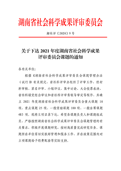 2021年度湖南省社会科学成果评审委员会课题立项目录