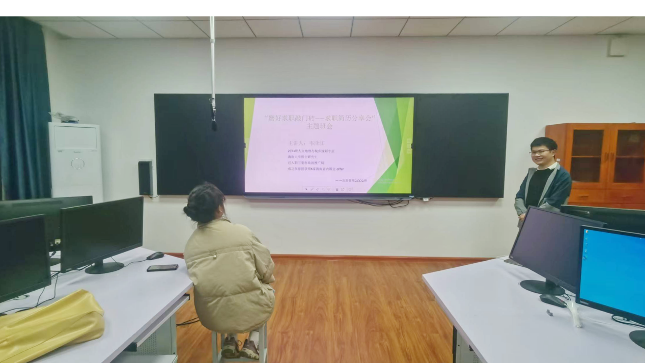我院旅游管理2002班举办“磨好求职敲门砖——求职简历分享”主题班会