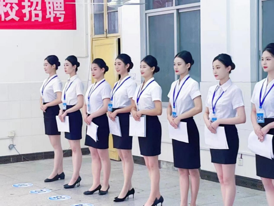初试环节主要是对面试者的仪容、仪表、仪态等职业形象进行考察。面试者按10人一组有序排队进入面试区。在初试中,面试者们精致的妆容,标准的站姿及整洁的职业装,无一不体现良好的职业精神面貌。考察结束后,通过者进入资格复查区做进一步的资格复查。