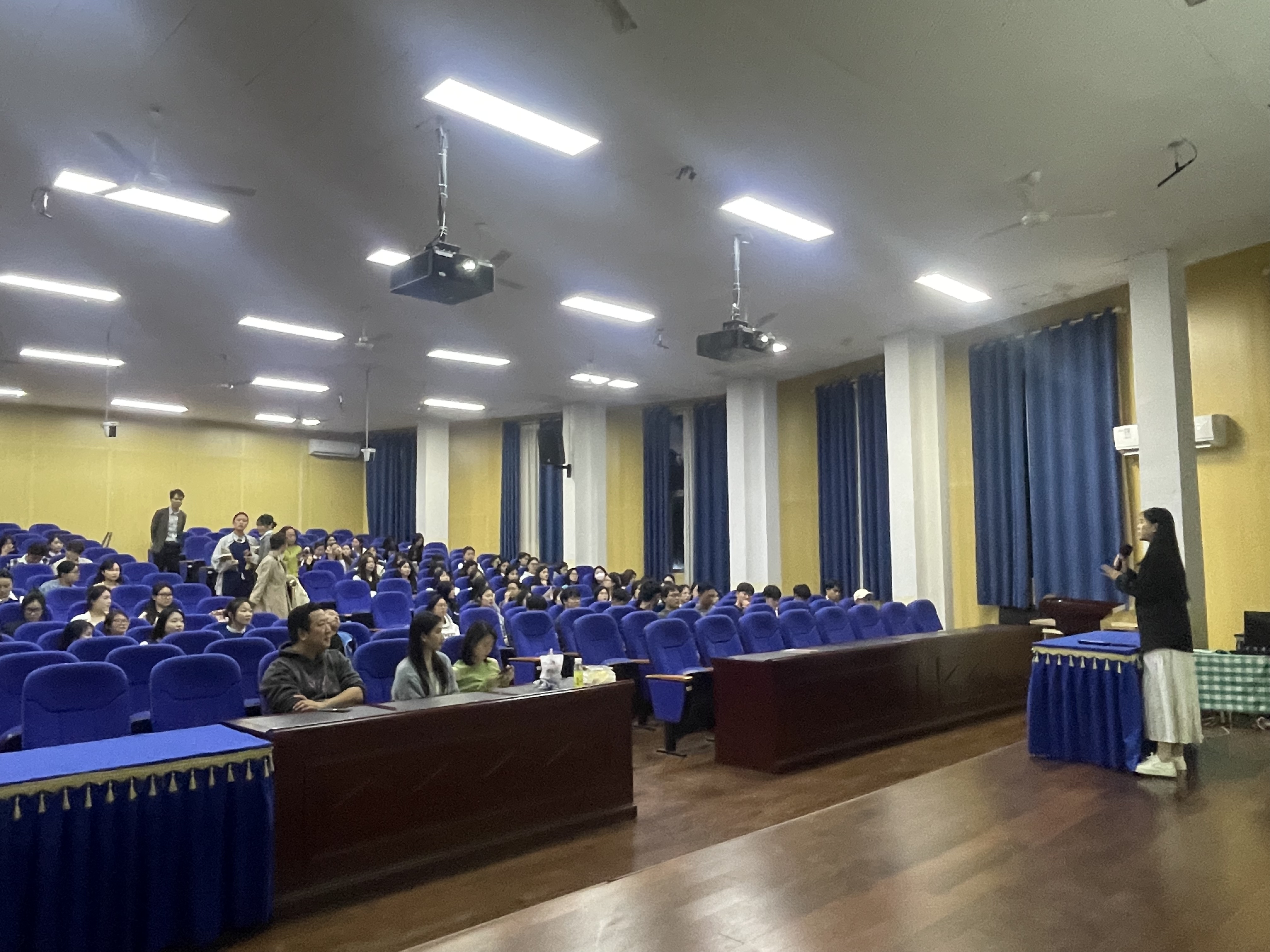 在分享会上,韩雪学姐首先向同学们分享了自己的面试体会和在行业内的成长经历,介绍了该行业的就业情况及现状,为在座的学弟学妹们们提供了宝贵的面试技巧和职业规划建议。接着韩雪学姐还分享了一些关于成为一名优秀空姐所需具备的条件和素质,包括外形条件、语言沟通能力、心理素质、专业技能等等。
