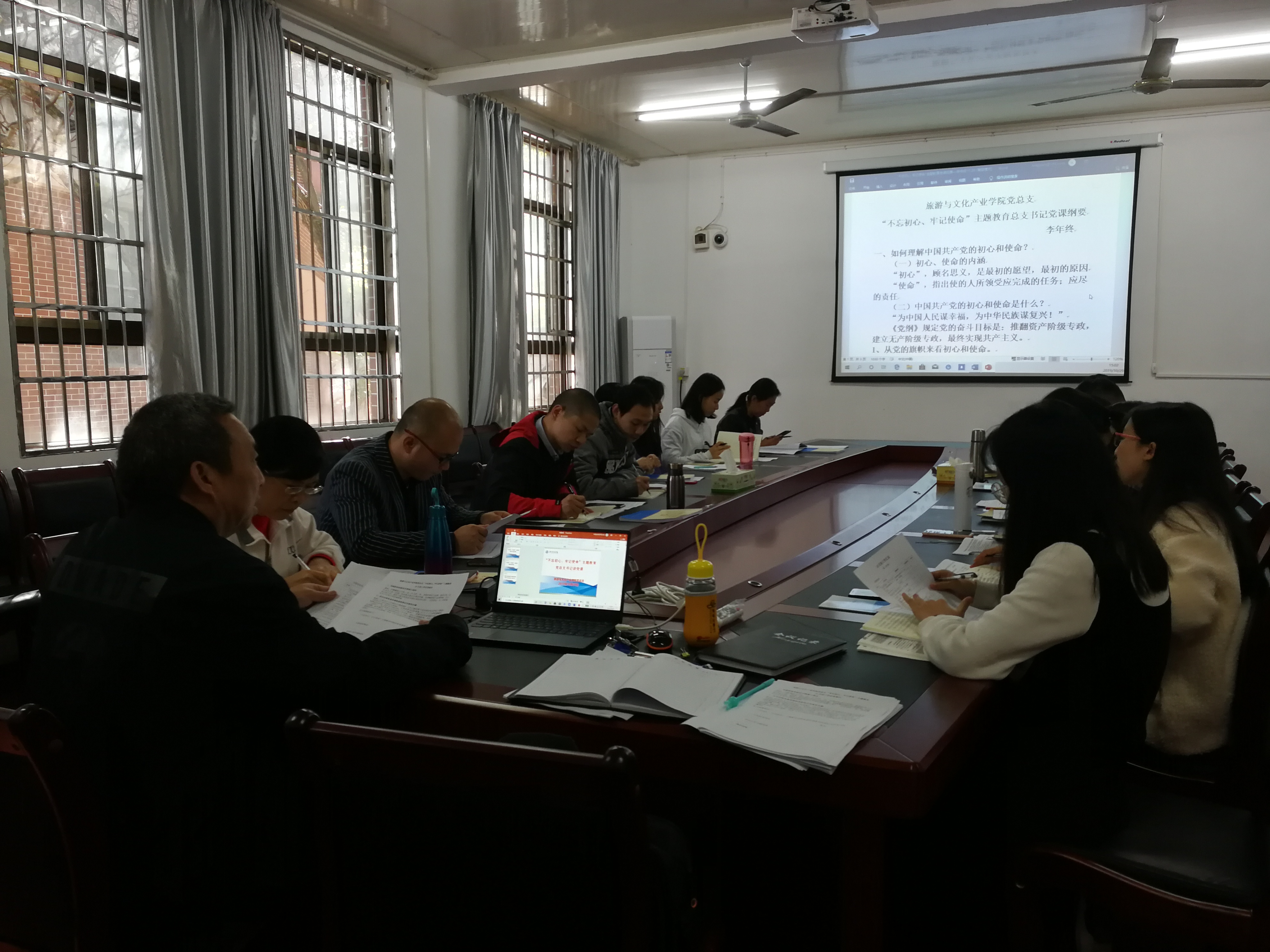李年终以“不忘初心、牢记使命”为主题,围绕“如何理解中国共产党的初心和使命”、“开展‘不忘初心、牢记使命’主题教育活动干什么”两个问题,阐释了初心与使命的内涵、主题教育的具体目标以及学院开展主题教育的具体任务。他强调,作为共产党员,要时刻铭记党的历史,高举党的旗帜,肩负起时代赋予的责任。他指出,学院要坚持德育首位,树立“质量就是生命”的概念,为教师成长、学生成才排忧解难。最后他领学了2019年10月28日光明日报刊登的《探寻中国共产党为什么能的密钥》一文,勉励学院全体师生党员坚持实事求是,勇于攻坚克难,不断推动学院的发展。