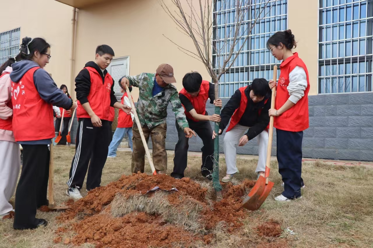 活动当天,师生们热情高涨,分工协作。曾旎老师作为活动总协调,带领学生规划种植区域,强调科学植树的重要性,寓意着廉洁建设也要遵循一定的原则,如同科学植树般不可偏差;李满老师现场示范栽种技巧,讲解树木养护知识,借此暗示廉洁品德需要悉心培育和长久维护;李思雨老师则组织学生分组行动,确保活动高效有序,这正如在廉洁工作中,有序的组织和协作能更好地推动廉洁之风的形成。挥锹挖坑、扶苗培土、提水浇灌……师生默契配合,短短两小时便成功栽种数几棵樱花树苗。