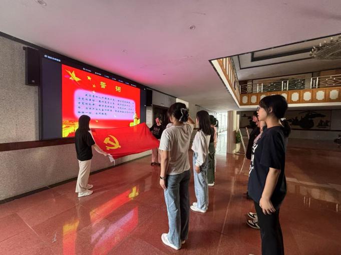 活动以“红色领航·廉润初心”为主线展开。在博物馆内,党员们跟随讲解员的脚步,透过青铜器、陶瓷器触摸千年文脉,从周敦颐《爱莲说》廉政典故中汲取精神养分。在革命烈士纪念馆,革命先烈抛头颅洒热血的壮举令众人动容。在鲜红党旗下,新党员们佩戴徽章,举起右拳庄严宣誓,铿锵誓言与历史回响共鸣共振。