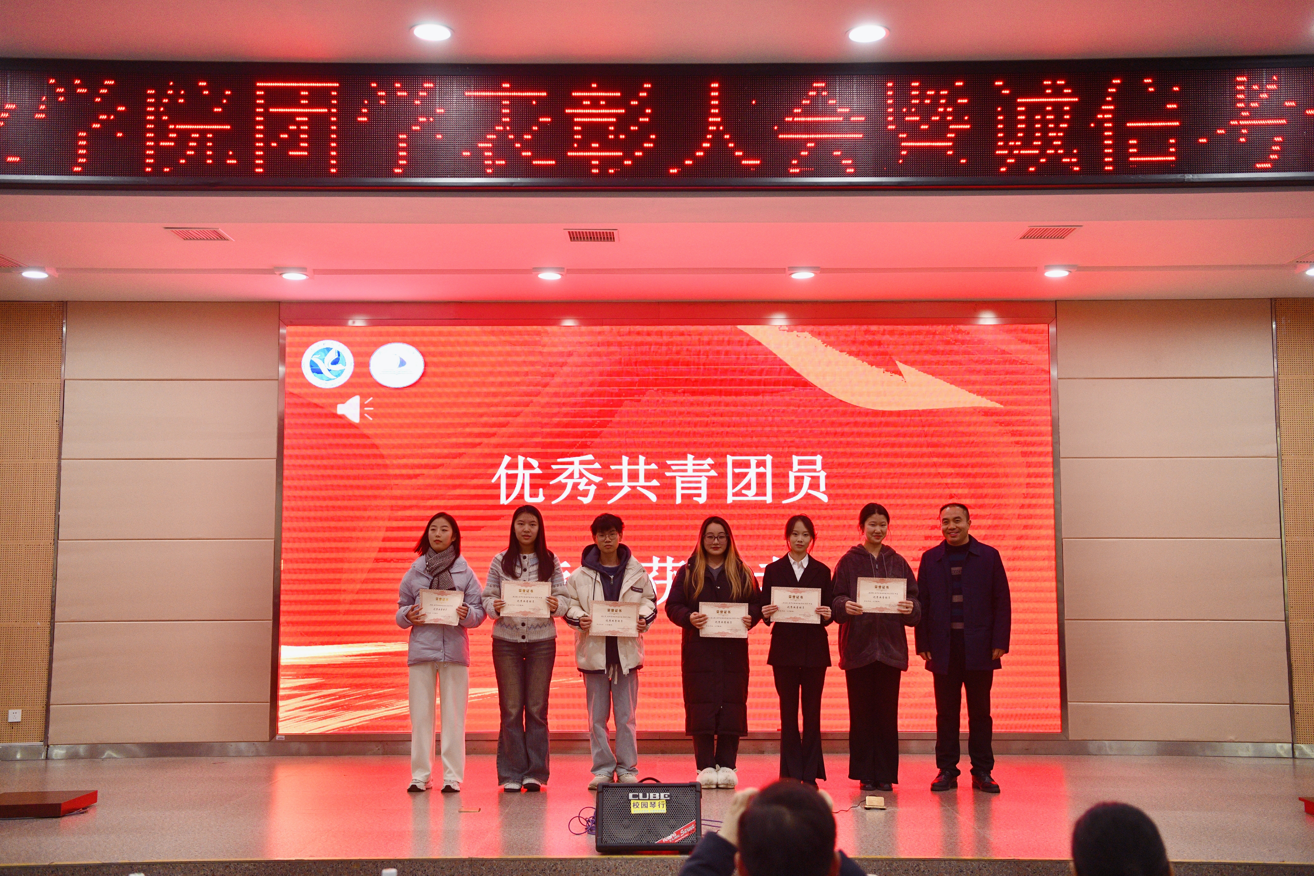 大会第一项议程由学工办辅导员李满老师宣布优秀共青团员、奖学金及优秀运动员等奖项获表彰学生名单,在大会主持人组织下,由会场领导、老师为获奖学生颁发荣誉证书。