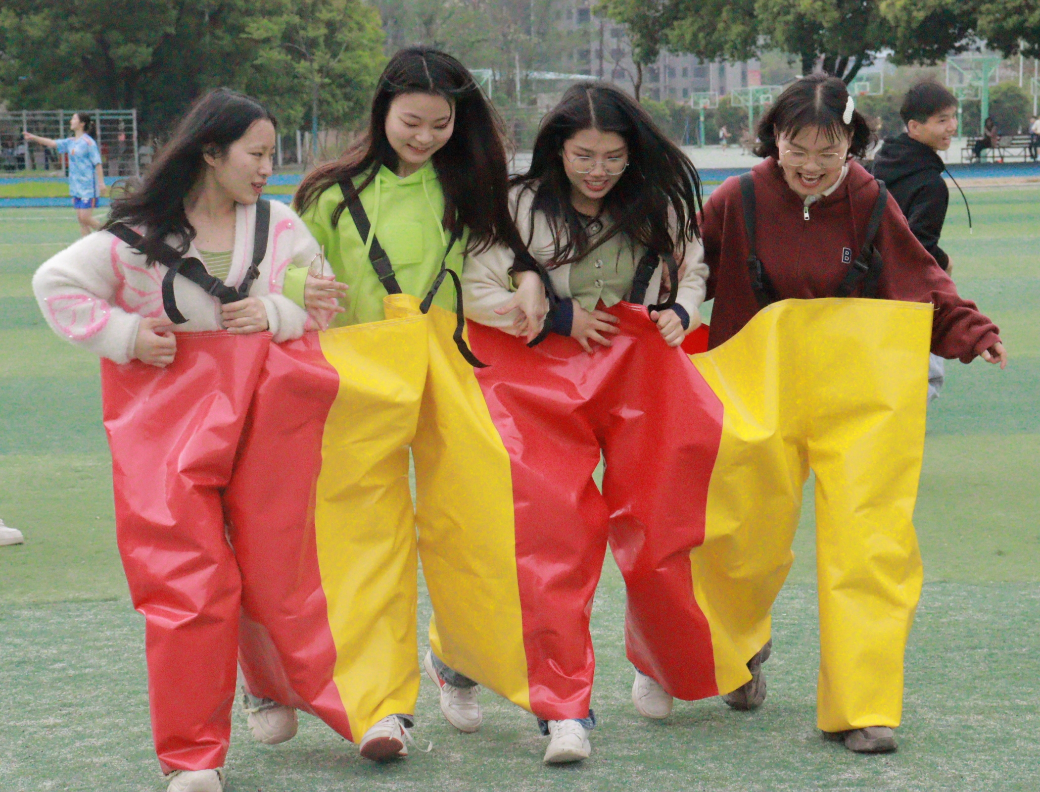 本次素质拓展活动共有“有令必行”、“众志成城”、“齐头并进”、“心有灵犀”、“万众一心”五个项目。“有令必行”率先拉开帷幕,考验着大家的执行力;“心有灵犀”考验了团队之间的默契程度;“众志成城”告诉大家团队胜利才是真正的胜利;“齐头并进”需要参赛者充分沟通才能高效行动;最让人激动的是“万众一心”,双方拔河的同学卯足干劲,旁边喊加油的同学声嘶力竭,将氛围推向了高潮。