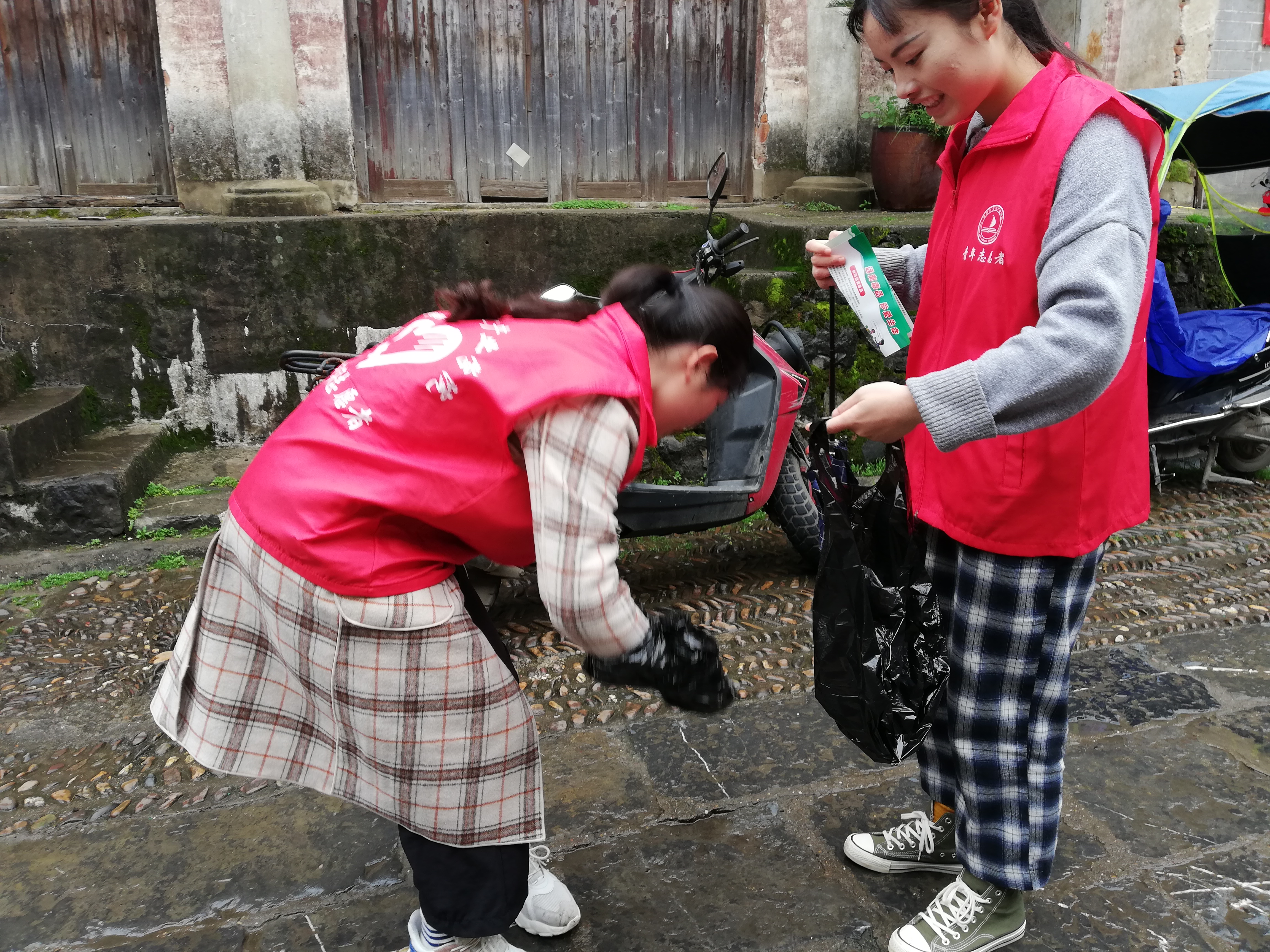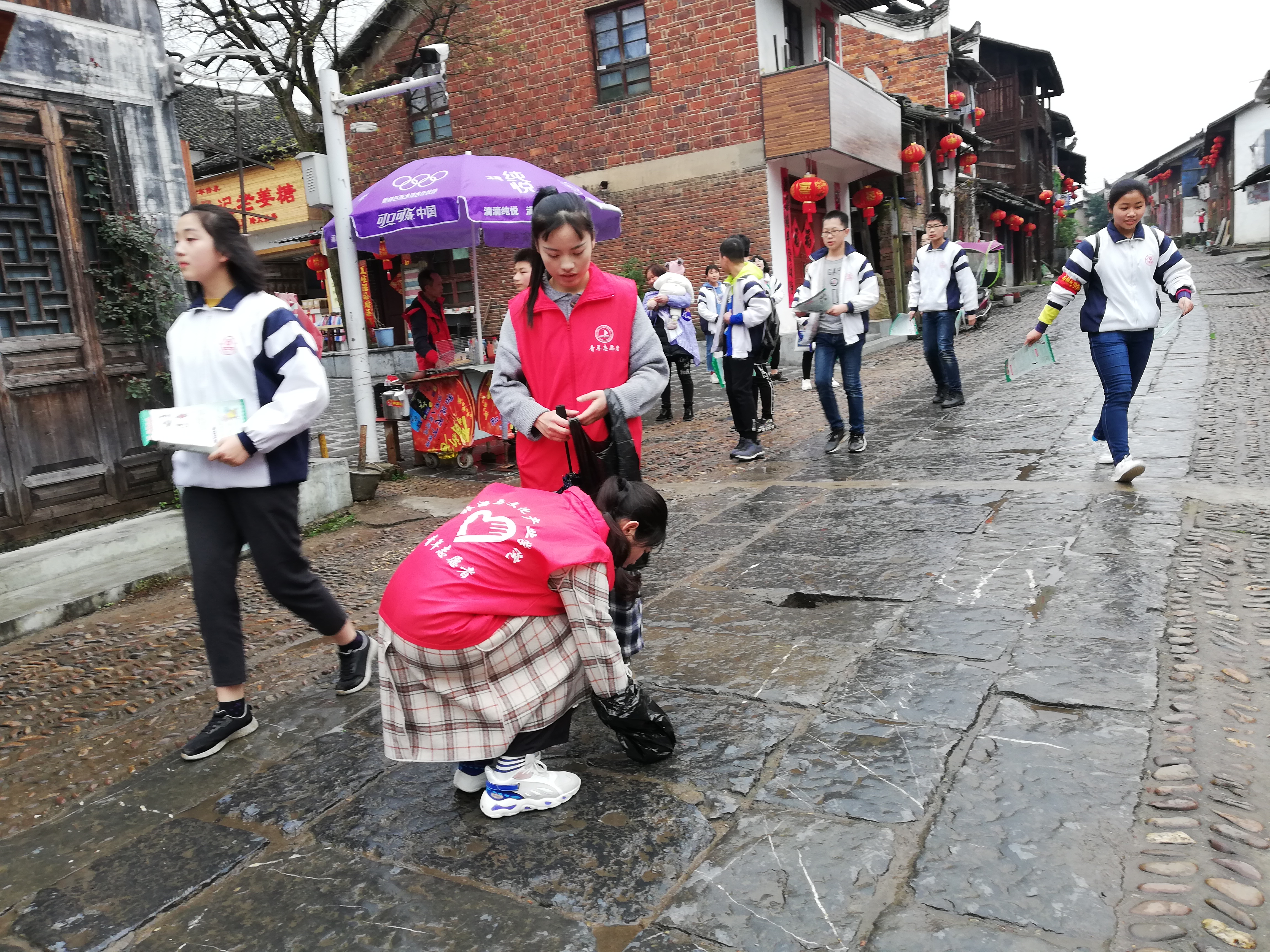 连绵的雨浇不灭志愿者的热情,志愿者们有条不紊分工协作,有的志愿者对街道上的纸屑、烟头、落叶等垃圾进行清扫,有的志愿者对景区内的小广告进行了清理,还有的志愿者们进行了环保宣传,劝导人们养成不乱扔垃圾的好习惯。志愿者们活跃在柳子街的各个角落,来往的游人纷纷对他们投去了赞许的目光。