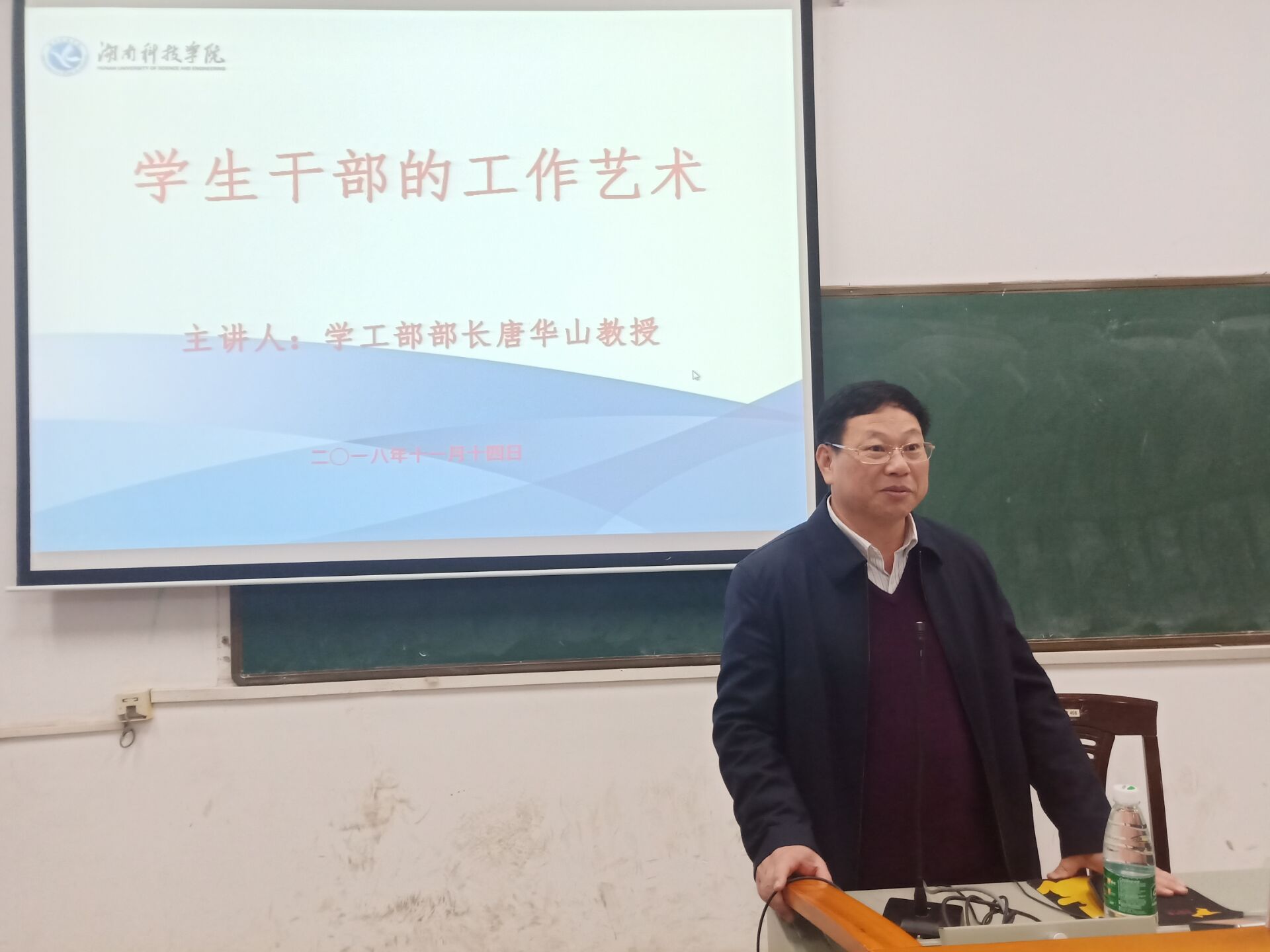本网讯(通讯员 潘洵)为了进一步提升学生干部的工作艺术, 11月14日晚,旅游与文化产业学院在明德楼206开展了第二期学生干部培训,本次培训由校学工部长唐华山教授主讲,学院党总支副书记潘清远主持,学院全体学生干部参加培训。