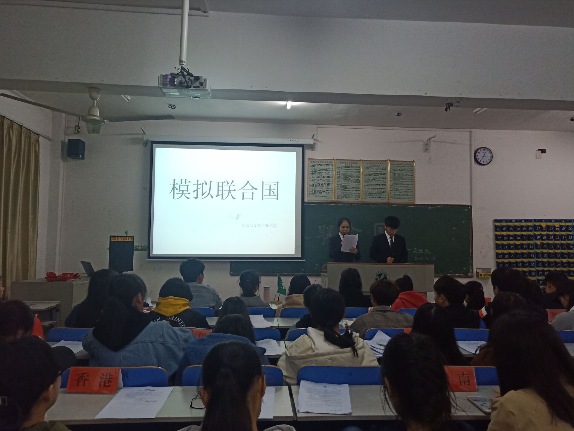 本网讯(通讯员 彭伟怡)"Ladies and gentlemen:good evening everyone……"为了提高同学们的演说辩论能力,提升专业知识素养,开拓大学生的视野。11月24日晚,我院在明理楼202教室举办第一届“模拟联合国活动”,党总支副书记潘清远等出席此次会议并担任评委。