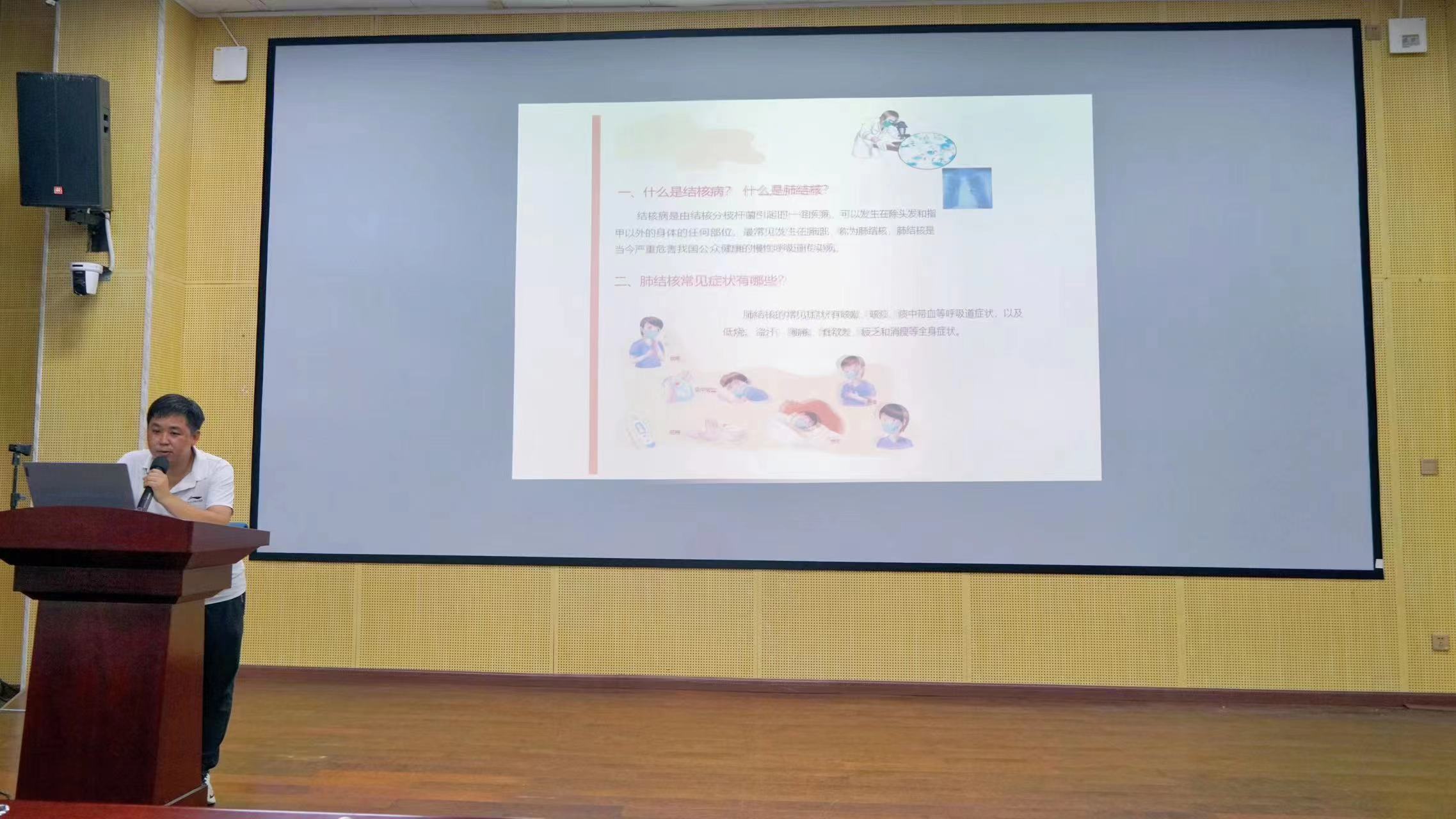 邓华锋医生艾滋病为切入点,艾滋病的发病、传播途径、预防措施及治疗现状进行讲解,呼吁大家要改善不良的生活方式,做到合理膳食、多运动、摒弃不健康的生活习惯。同时向同学们推广了预防艾滋病的“ABC”原则,即A(Avoid)——避免接触,B(Belief)——正确的信念,C(Change)——改变行为。随后,邓医生还科普了肺结核的相关知识,他指出,肺结核是一种可预防,可治疗的疾病。最后,邓医生强调健康重在预防,防病胜于治病我们在日常生活中须多观察自己身体状况,这样才能使大家拥有良好的生活方式,远离传染病。