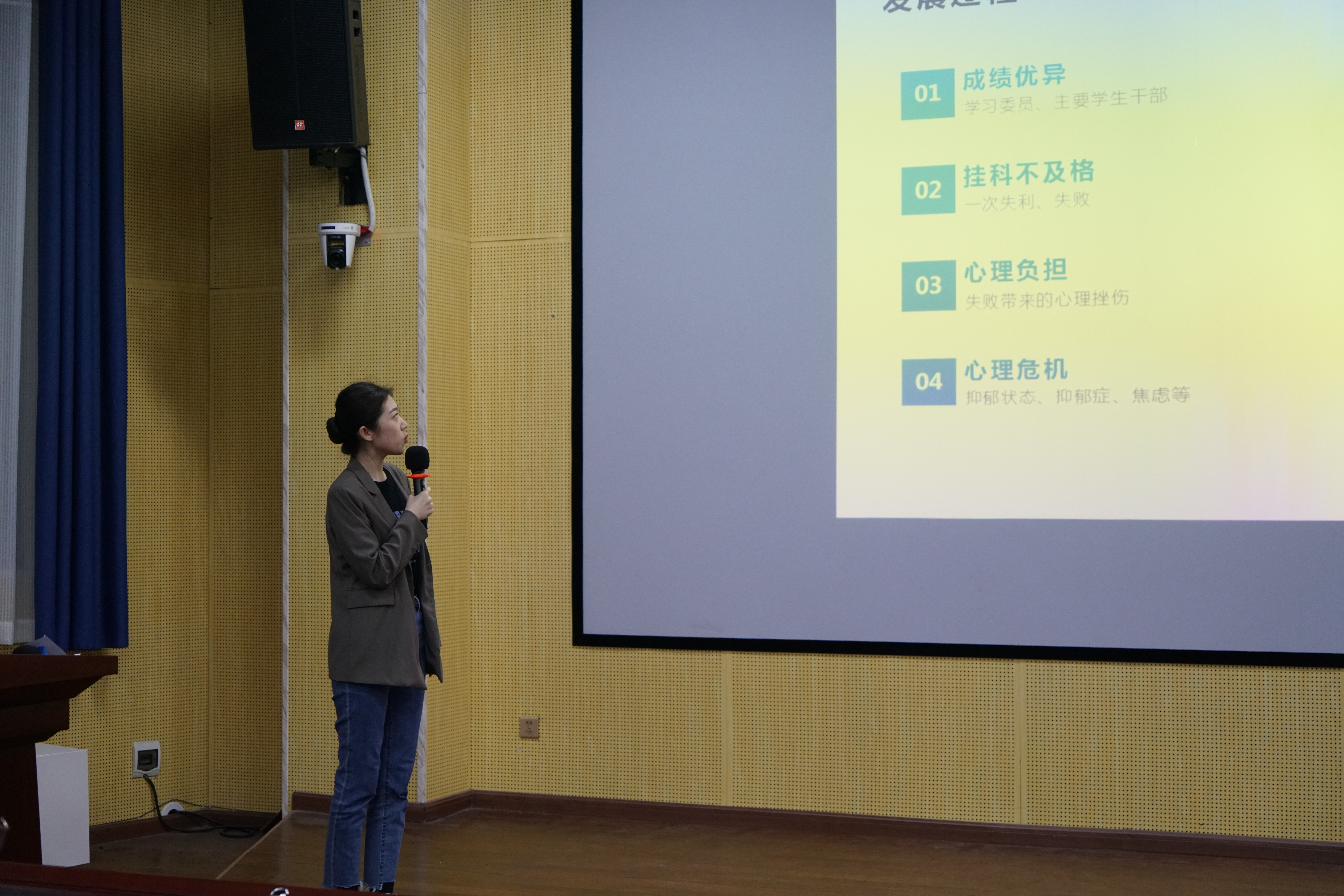 各班汇报主要围绕案例简介、研讨收获,以及面对该案例应如何处置等内容展开。案例选取有较强的代表性,如“学生有“幻象”怎么办”、“遇到患有精神抑郁症的学生怎么办”、“学生出现考试焦虑怎么办”等,在一定程度上达到了相互交流学习的目的。