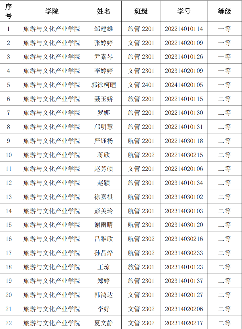 根据学校《关于开展世界杯官网 2025 年奖助学金评审工作的通知》以及《2026世界杯官方合作网站学生奖励办法》、《2026世界杯官方合作网站学生资助管理办法》的有关规定,按照公平、公正、公开的原则,经个人申报、班级审核推荐,学院学生工作领导小组审定,现拟定旅管 2201 班邹建雄