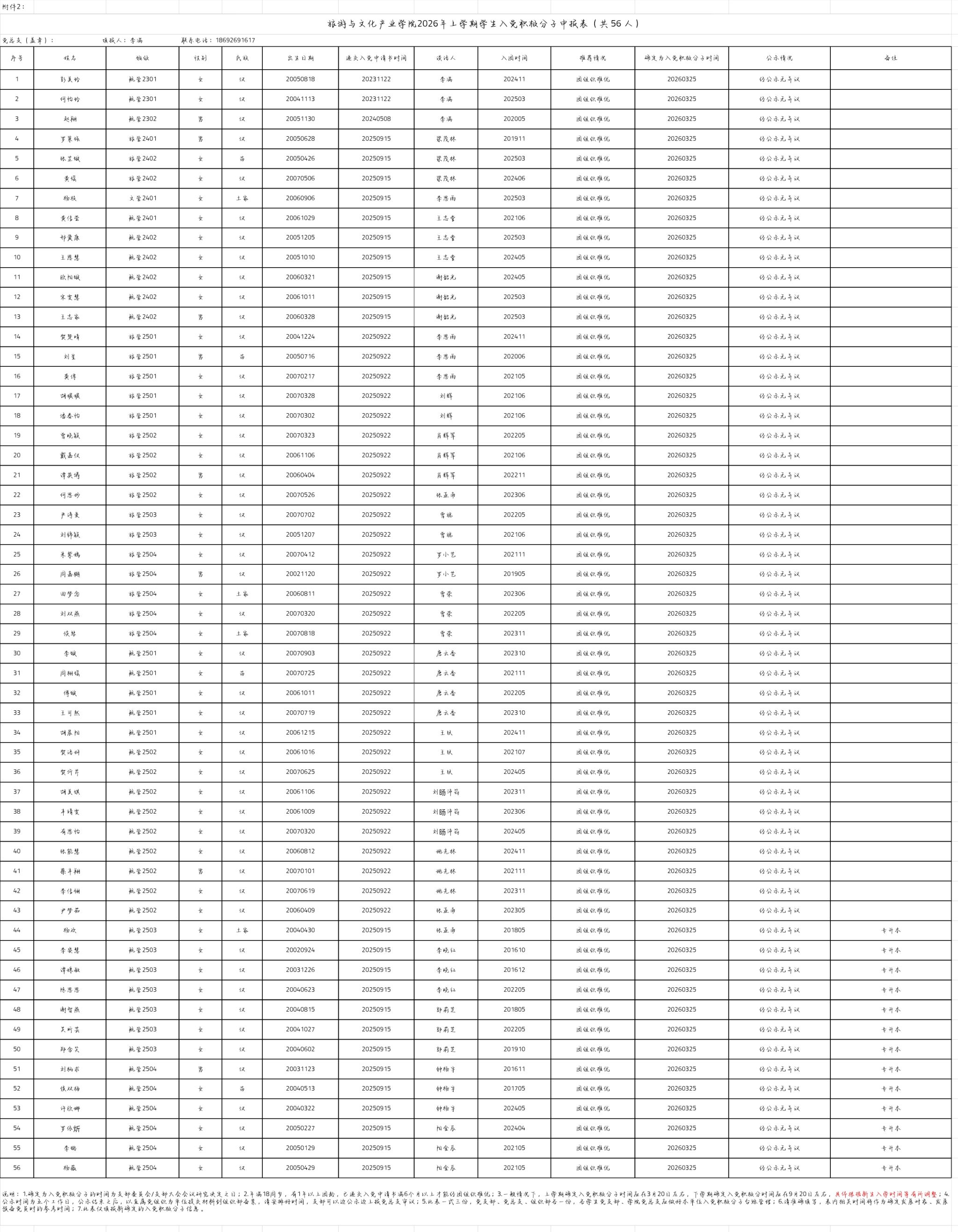 附:《旅游与文化产业学院2026年上期学生入党积极分子名单》