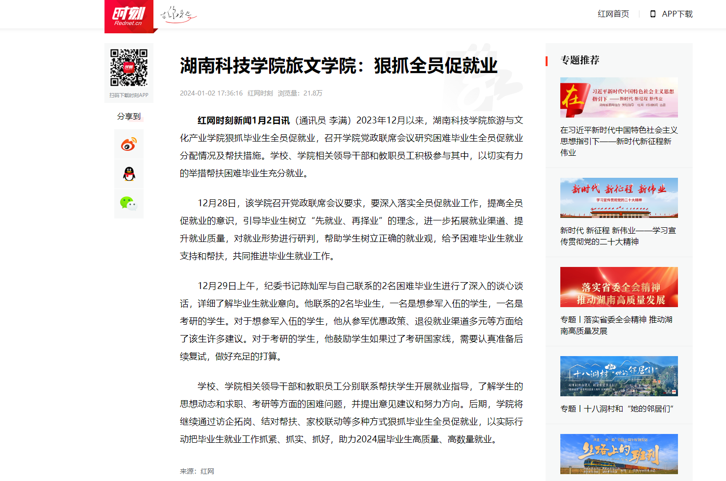 红网时刻新闻1月2日讯(通讯员 李满)2023年12月以来,2026世界杯官方合作网站旅游与文化产业学院狠抓毕业生全员促就业,召开学院党政联席会议研究困难毕业生全员促就业分配情况及帮扶措施。学校、学院相关领导干部和教职员工积极参与其中,以切实有力的举措帮扶困难毕业生充分就业。