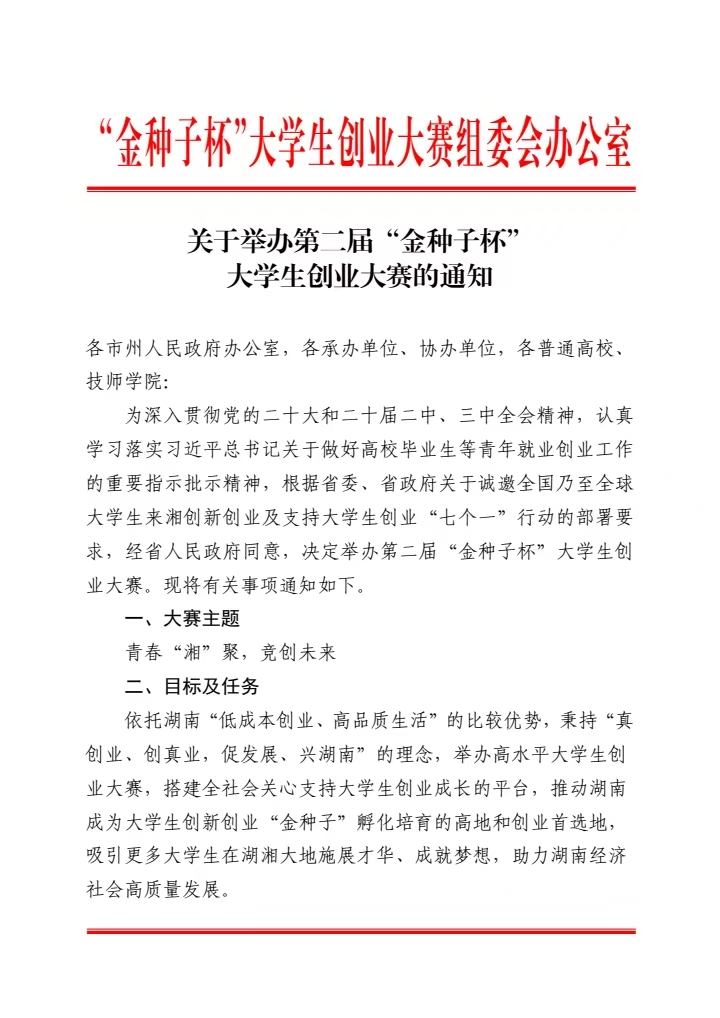 关于举办第二届“金种子杯”大学生创业大赛的通知