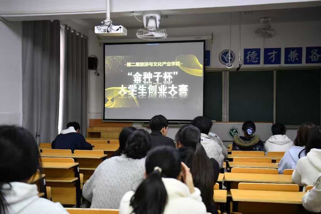 本网讯(通讯员:韩筱筱)2025年12月1日,“金种子杯”大学生创业大赛旅游与文化产业学院决赛在弘毅楼顺利开赛。大赛以“青春‘湘’聚,竞创未来”为主题,作为院赛选拔赛,旨在选拔优质创业项目,激发学子创新活力。