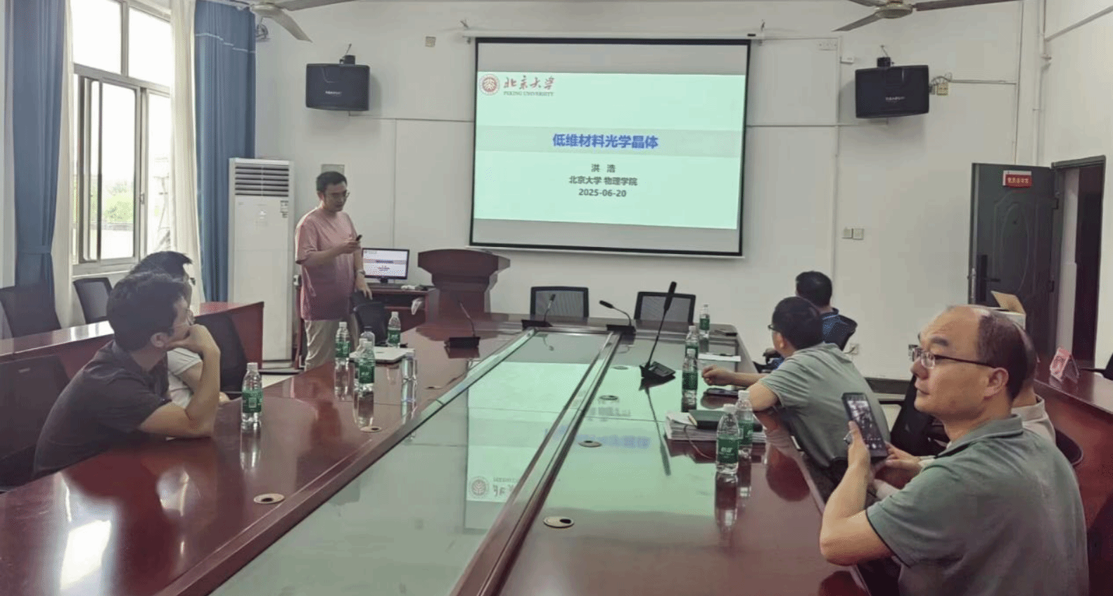 图1 北京大学特聘副研究员洪浩正在做《低维材料光学晶体》学术报告