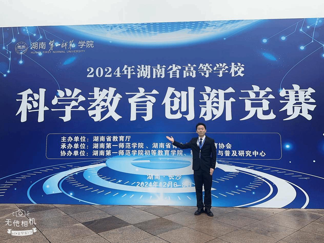 本网讯(通讯员高海峡)12月6日至8日,2024年湖南省高等学校科学教育创新竞赛在湖南第一师范学院举行。本次竞赛由省教育厅主办,世界杯官网和湖南省青少年科技教育协会承办。在12月6日至8日为期3天的比赛中,来自全省33所高校(22所本科、11所专科)的95位教学创新选手和66件教具与器材制作作品,分本科组和专科组展开激烈角逐。理学院21级物理学专业朱洪民同学,在指导老师高海峡的悉心指导下,荣获“教学创新”三等奖,为学院赢得了荣誉。