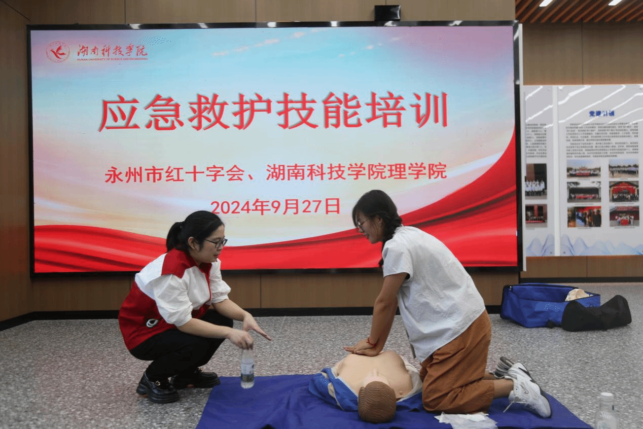 本网讯(通讯员:黄佳乐 龙枚樱)9月27日下午,理学院在明理楼开展急救知识培训讲座的活动,理学院了邀请永州市第一人民医院心血管内科的副主任医师、永州市红十字会培训师资周晔对急救知识进行讲解,理学院全体老师、部分学生代表共80余人参加。