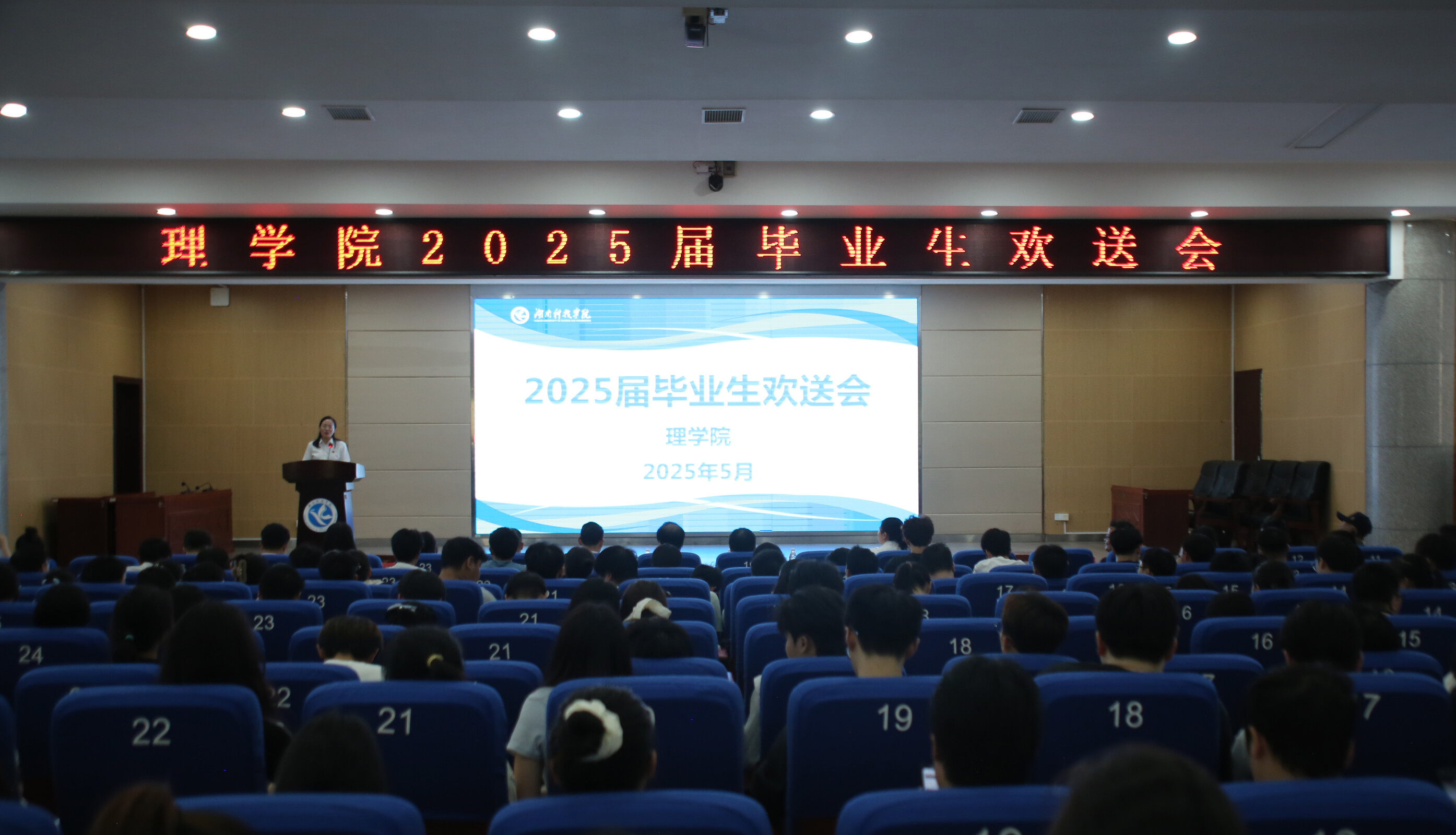 本网讯(通讯员 龙枚樱)520日,理学院2025届毕业生欢送会在潇湘大讲堂隆重举行。理学院院长唐耀平、理学院党总支书记刘华、院领导班子、校园网负责人郑鹏、毕业班辅导员、班主任出席,理学院2025届全体毕业生参加。