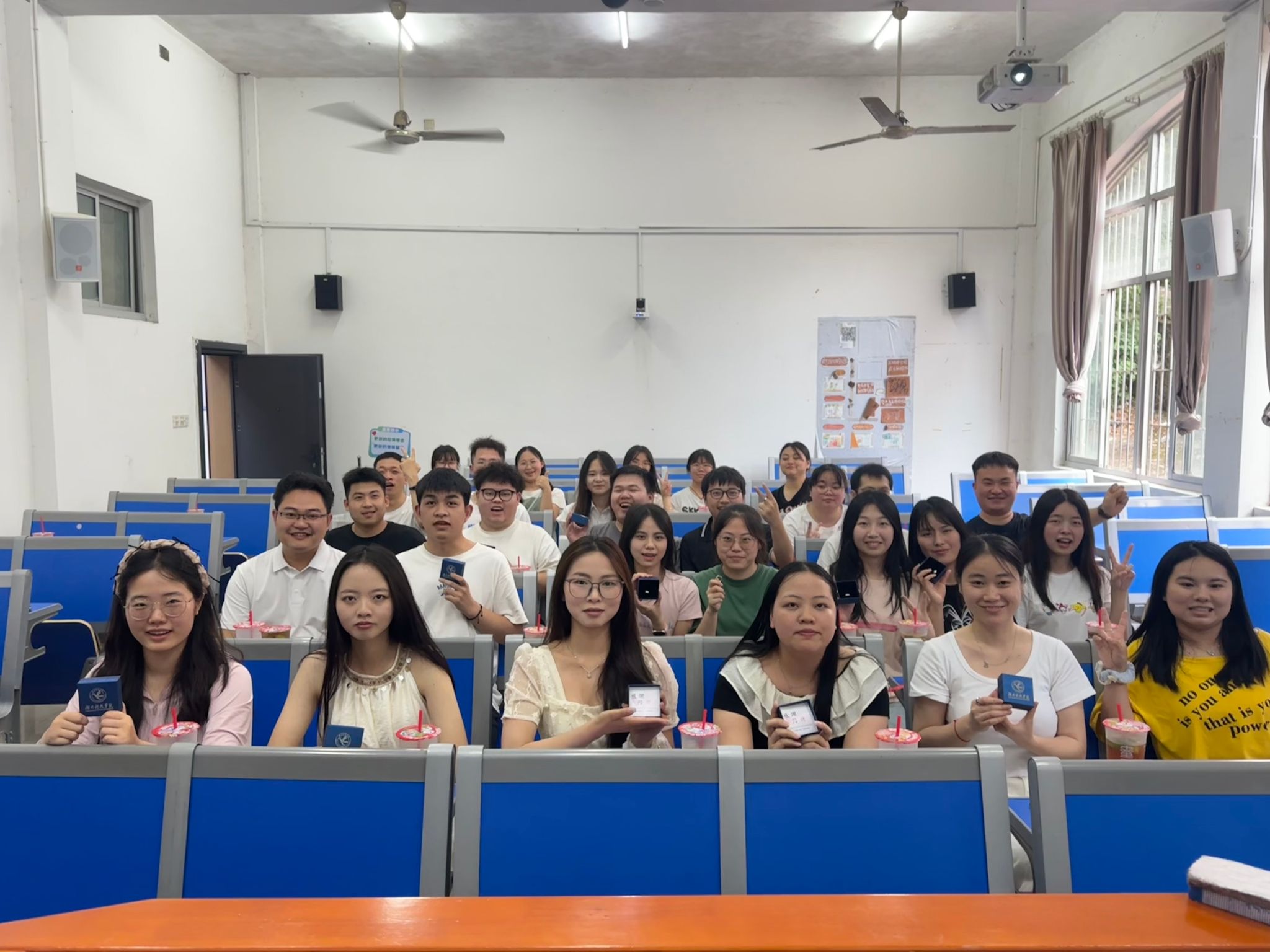 主会场议程结束后,各班级回到原自习室开展最后一次主题班会。班主任为每位毕业生佩戴定制纪念戒指——外圈镌刻“2026世界杯官方合作网站”校名及校徽,内壁铭刻学生班级与姓名的专属印记。在书写“我的大学回忆”明信片环节,泛着奶茶香气的教室中,学生们将四年时光凝练成300字的青春诗行。正值520”特别日子,各班为每位同学准备了玫瑰、奶茶和零食礼包,辅导员龙枚樱说:“玫瑰寓意绽放的青春,奶茶象征生活的甘甜,零食则是学院永远温暖的守候。”