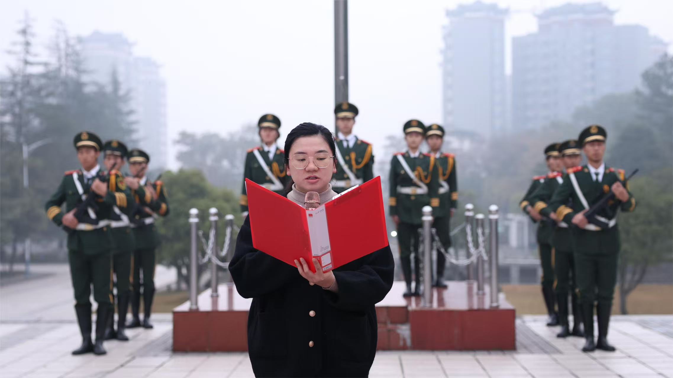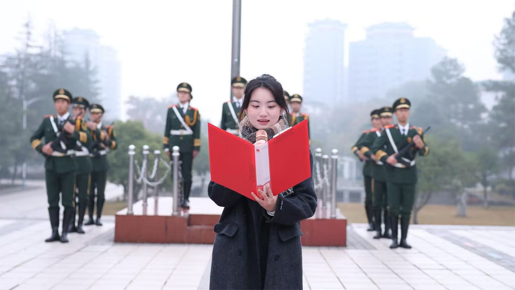 本网讯(通讯员 郭辉宇) 12月8日清晨,理学院在学校文化广场举行升国旗仪式。理学院党总支副书记欧阳素勤、全体辅导员大一、大二全体学生参加。升旗仪式由学工办主任康平老师主持。