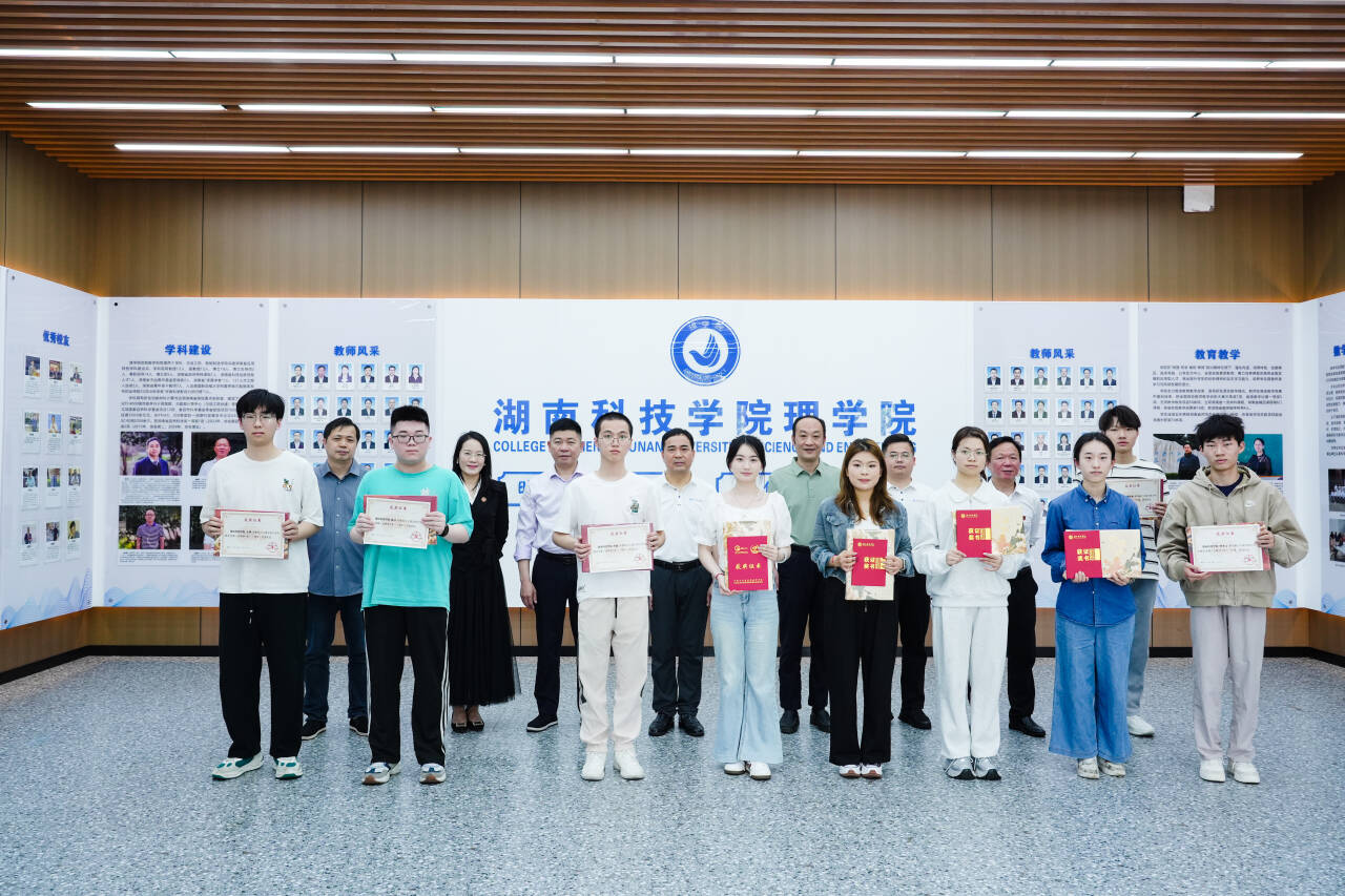 在颁奖仪式上,领导们为2025年全国大学生数学建模竞赛一等奖、湖南省数学建模竞赛一等奖获得团队代表颁奖。