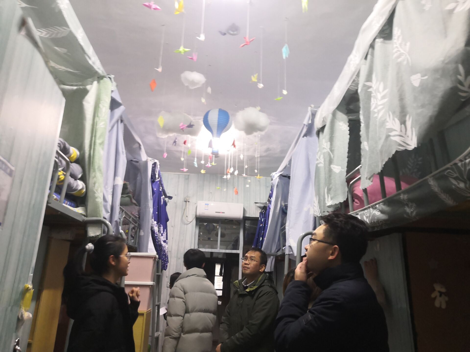 本网讯(通讯员王雨菁朱大冲)为了增强寝室文化建设,促进校园文明精神建设,增添校园活力色彩,提升寝室成员间的协作能力,构建“团结、友爱、文明、健康”的寝室文化氛围,我院劳动生活部特举办2020年寝室文化节之“我SHOW我屋,秀出我的室界”美化寝室大赛,决赛于12月2日下午进行,由党总支副书记黎建军、辅导员杜俊杰、曹惠如、谢美及学生会干部下寝进行评比。
