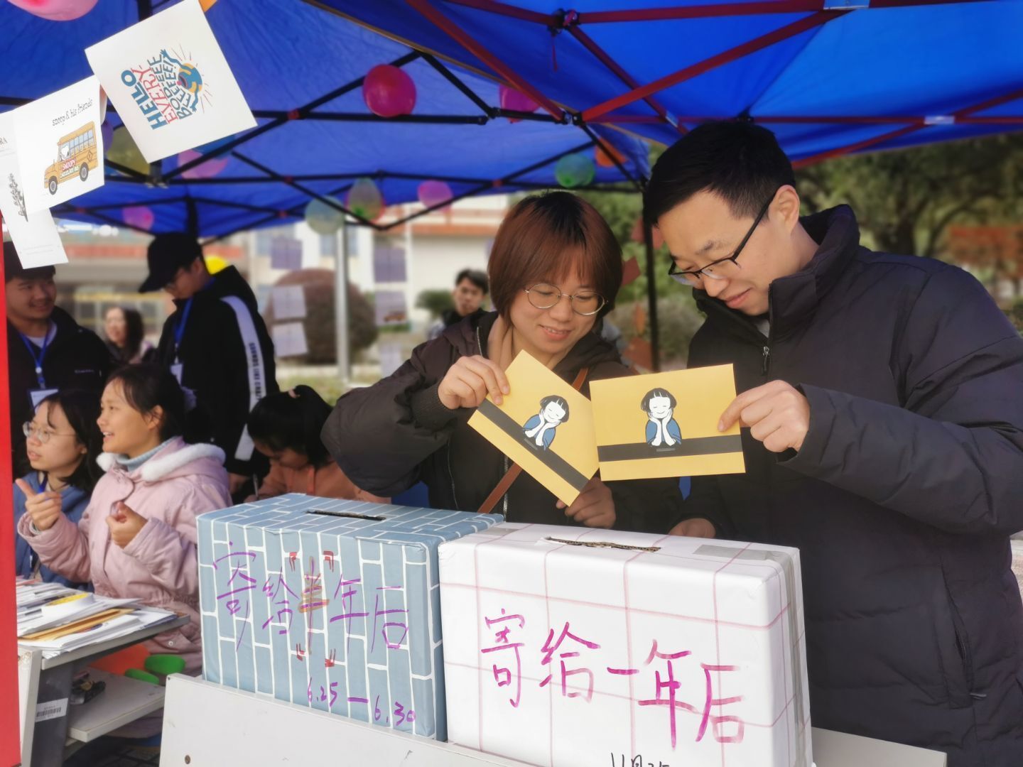 延续去年的12·5的热闹氛围,今年的活动现场熙熙攘攘,面向全校师生的活动范围使得活动更加的热闹。黎书记更是亲身体验了时光慢快递写信活动。“我的这封信想送给我的室友,希望她每天都开心快乐!”正往信箱里投递信封的一位同学暖暖地笑着说。在快节奏的现代生活中,写一封信给未来的自己或者朋友,为大家提供一个表达感情的机会,梳理对未来人生的期盼和祈愿,意义非凡。