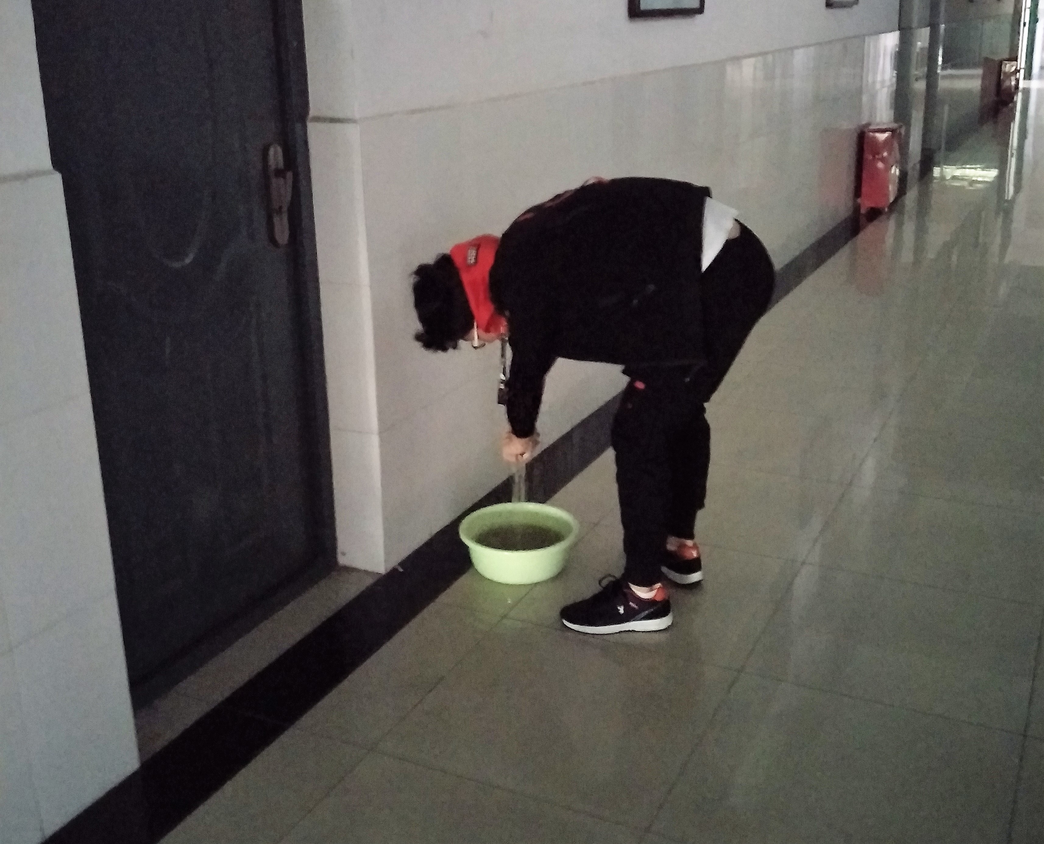 活动伊始,备好抹布与水盆的志愿者们于明理楼大厅集合,并按照人数平均分为了5个小组,一组志愿者负责一层楼的清洁工作。在明确了清洁任务、集体拍照后,志愿者们就行动起来,接完水、撸起袖子、拿着抹布将两个楼梯间的扶手及墙上的挂件擦拭得干干净净。虽然寒风冰水冻凉了志愿者们的双手,但他们服务他人的心依旧火热,不一会儿,楼道便焕然一新。